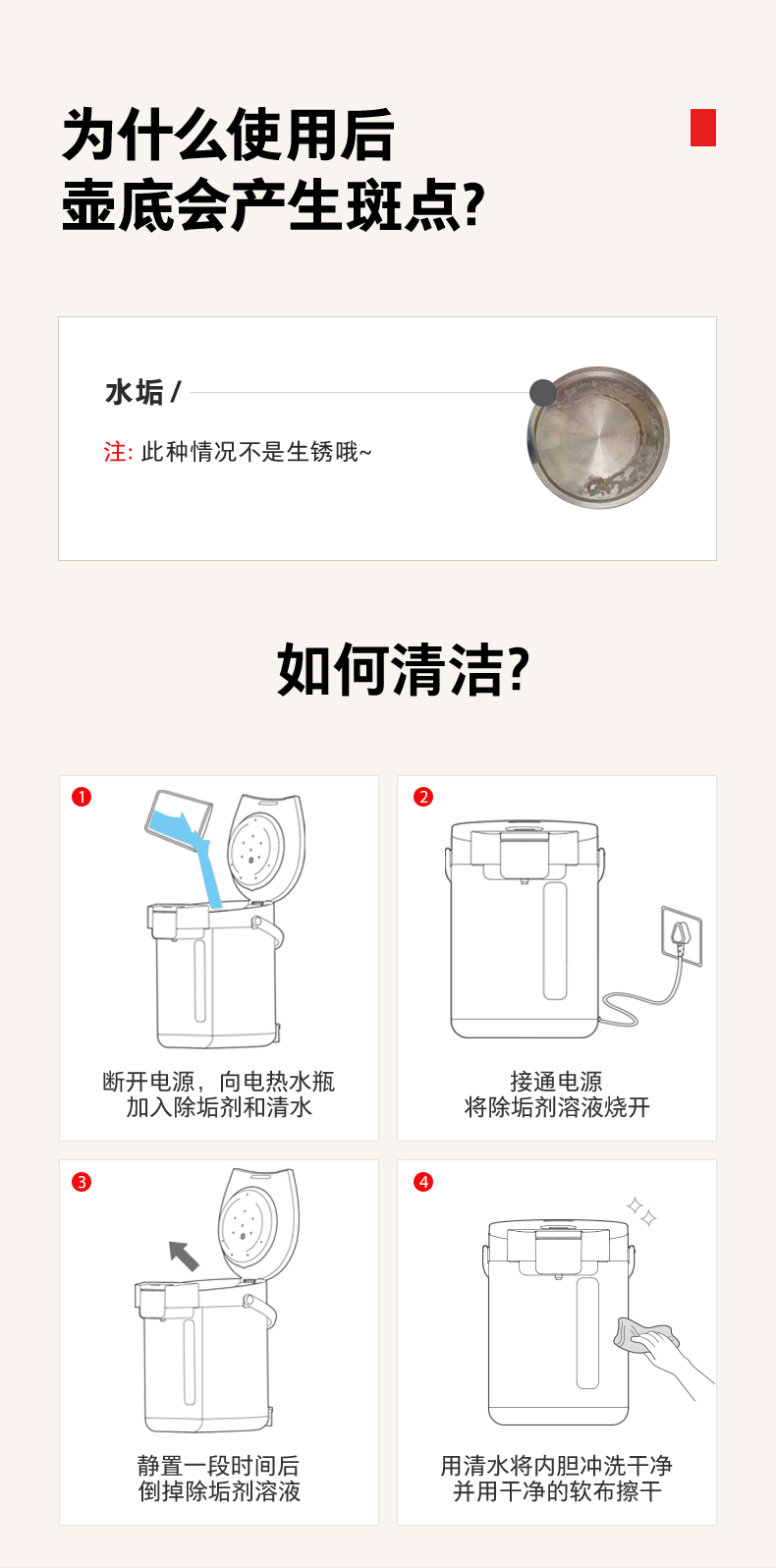 定期用除垢剂清洁内胆,防止水垢积累