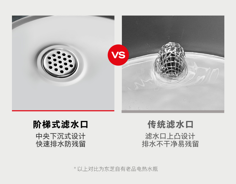防漏清洁:阶梯式滤水口防残留;支持除垢清洁,维护简单