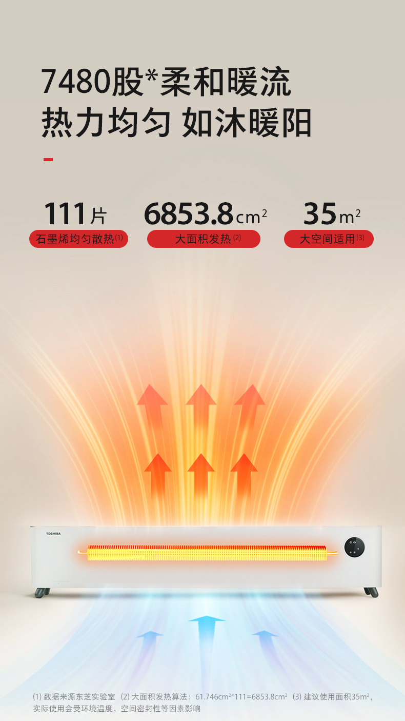 对流双动力循环设计,拉动整屋暖风大环流,可覆盖35㎡大空间,热力均匀如沐暖阳