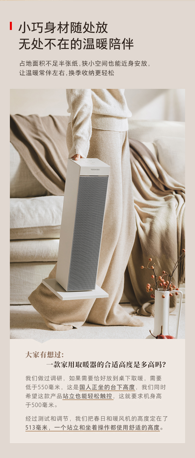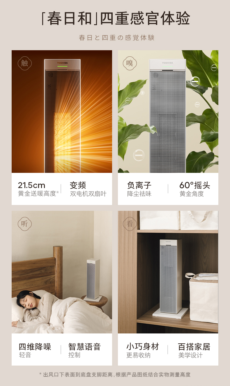 低空送暖设计:21.5cm黄金送暖高度,暖流下压后直出扩散全屋,兼顾暖脚与全屋升温需求