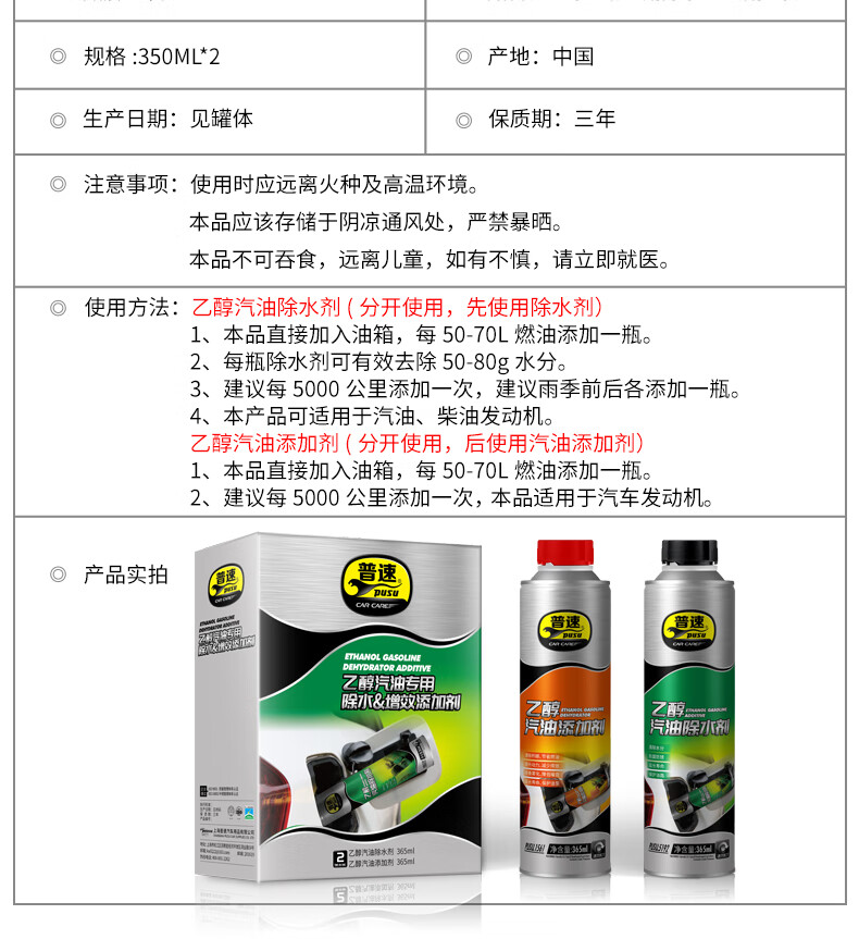 普速普速 PUSU5651乙醇汽油添加剂350ML/瓶