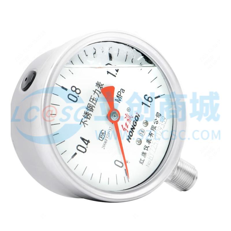 红旗CON/YTN-100BF不锈钢耐震压力表径向安装水油液压表水暖0-1.6MPa