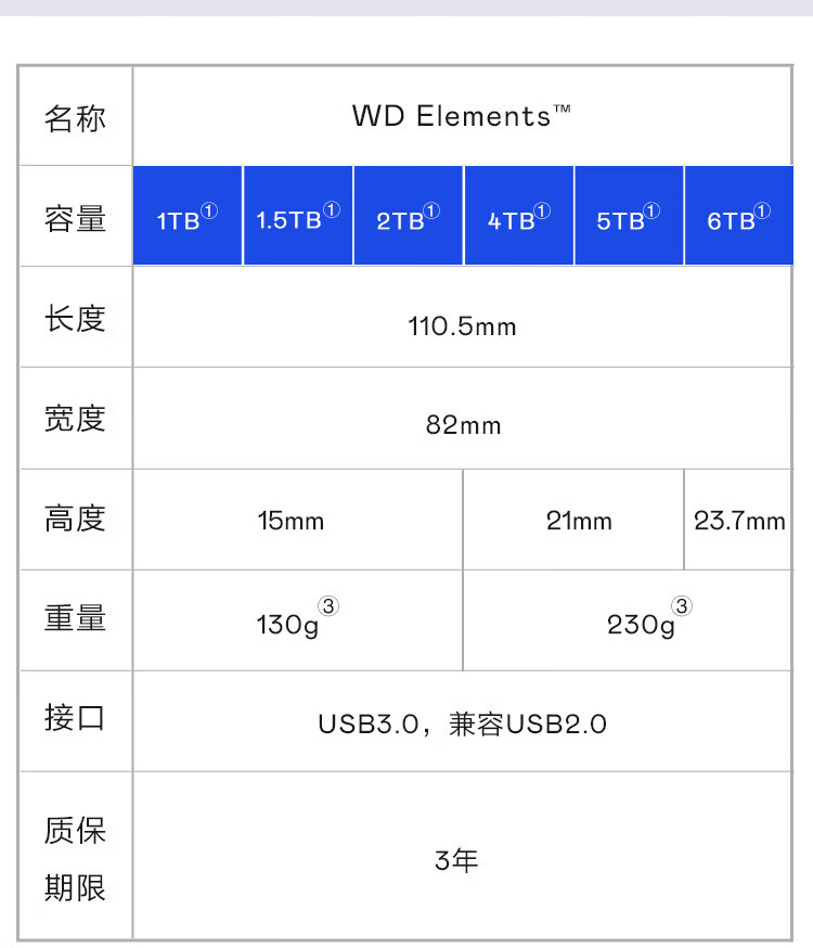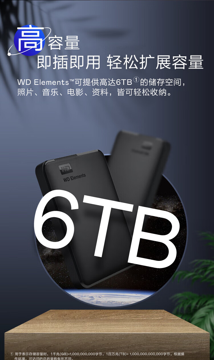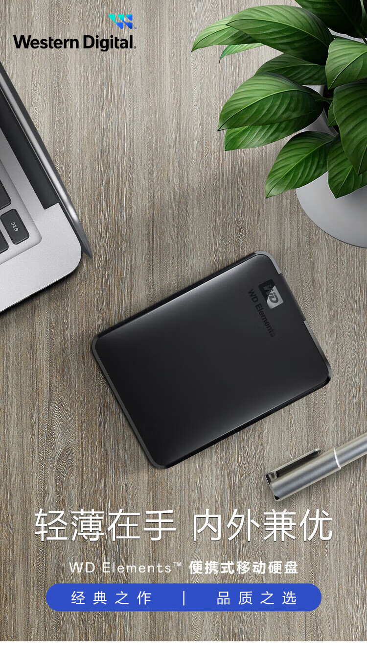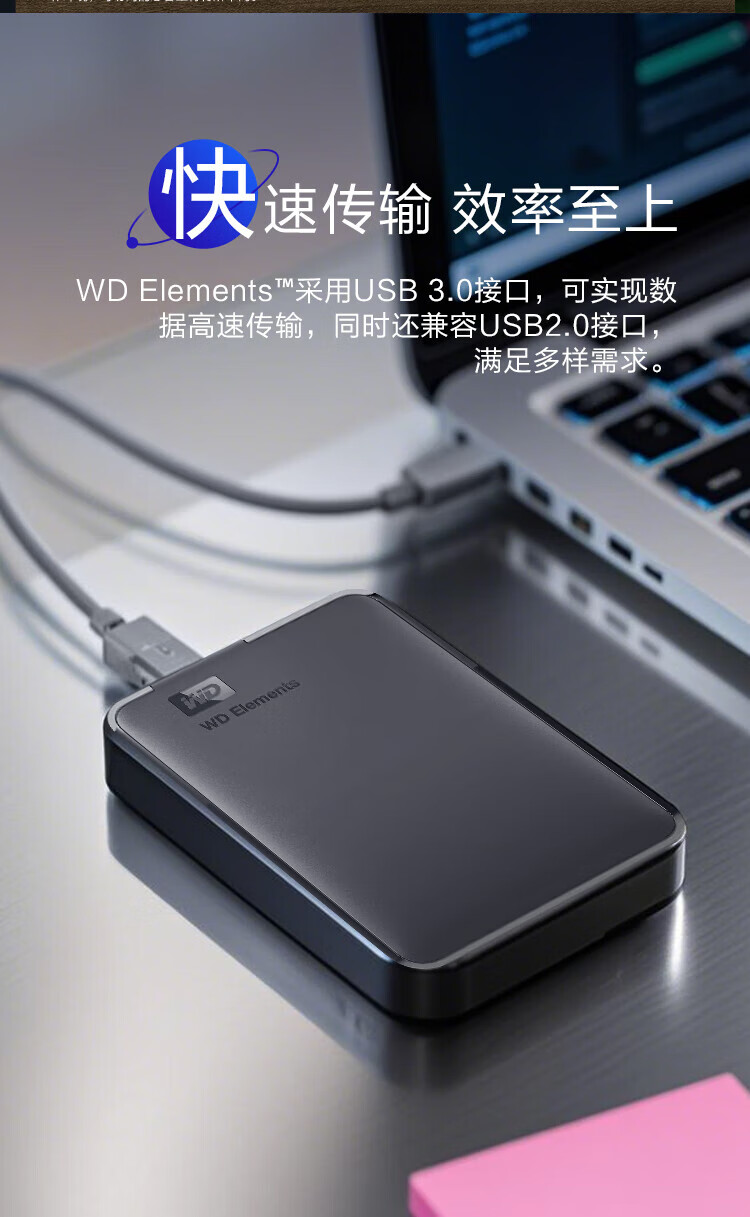 西部数据(WD)移动硬盘USB3.0 Elements 2.5英寸机械硬盘 2TB