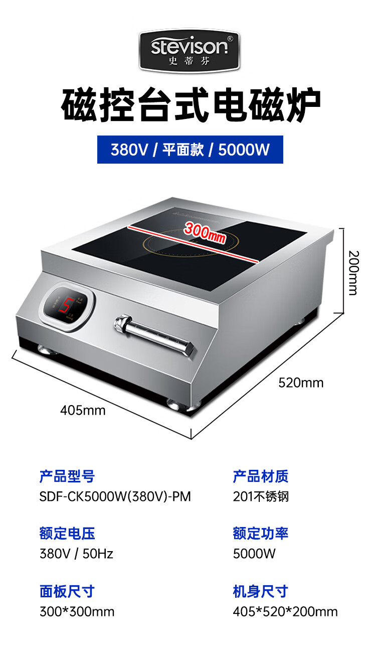Stevison(史蒂芬) SDF-CK5000W(380V)-PM 台式平面电磁炉 380V 5000W 磁控款 不锈钢