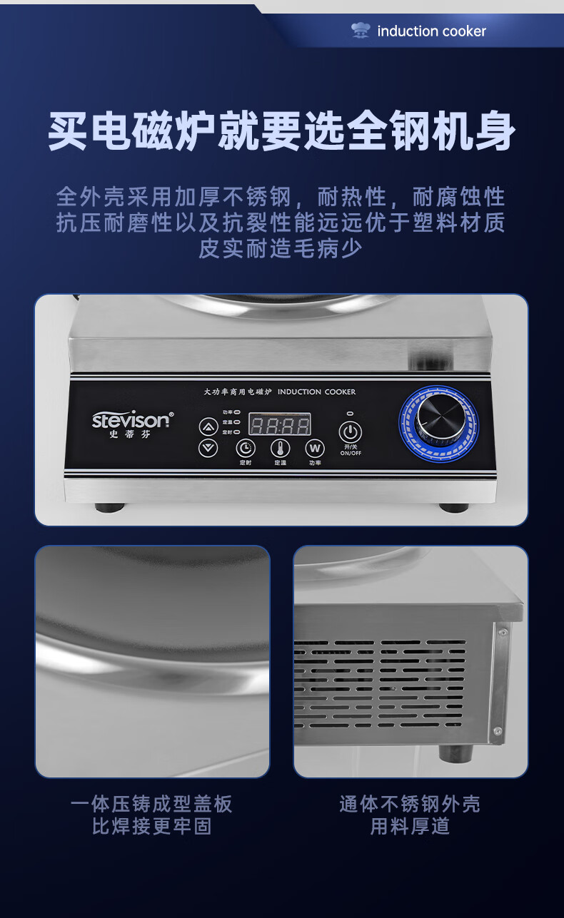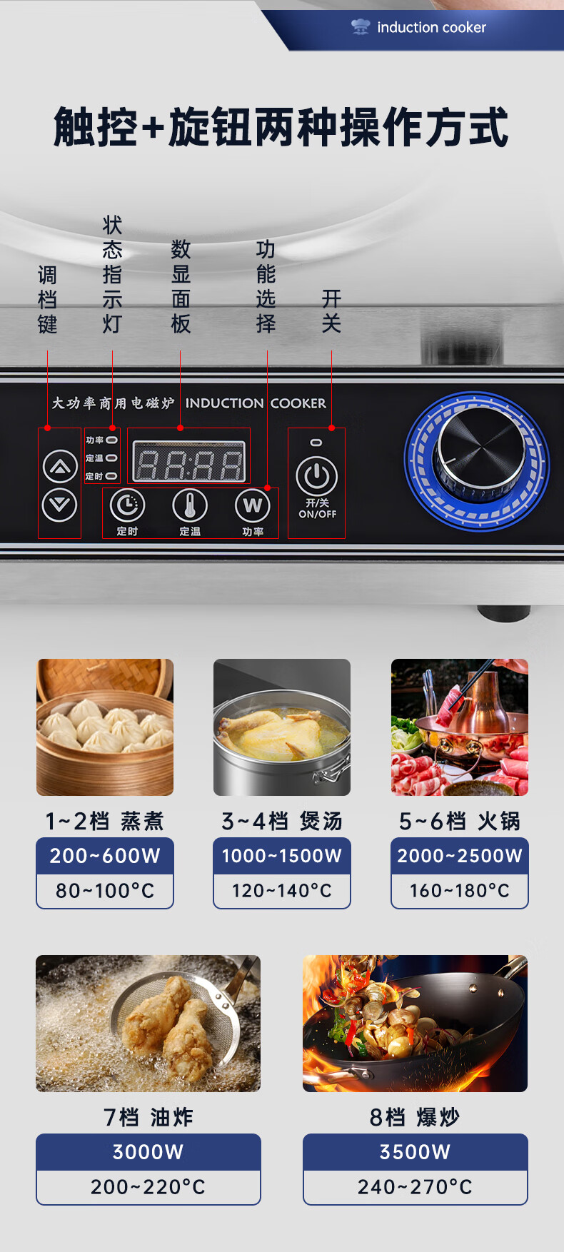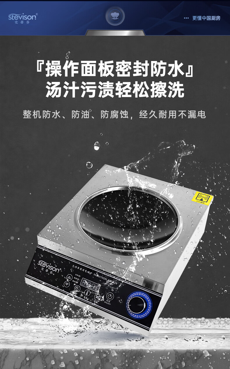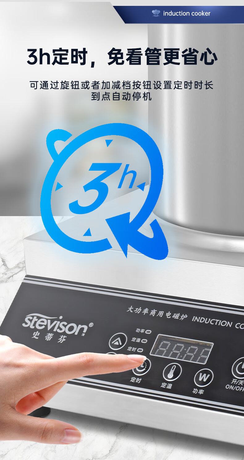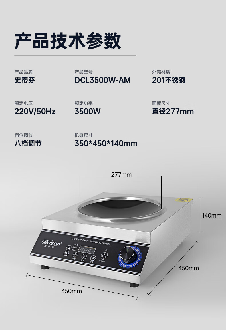 Stevison(史蒂芬) SDF-DCL3500W-AM 台式凹面电磁炉(配炒锅) 220V 3500W 双控开关 不锈钢