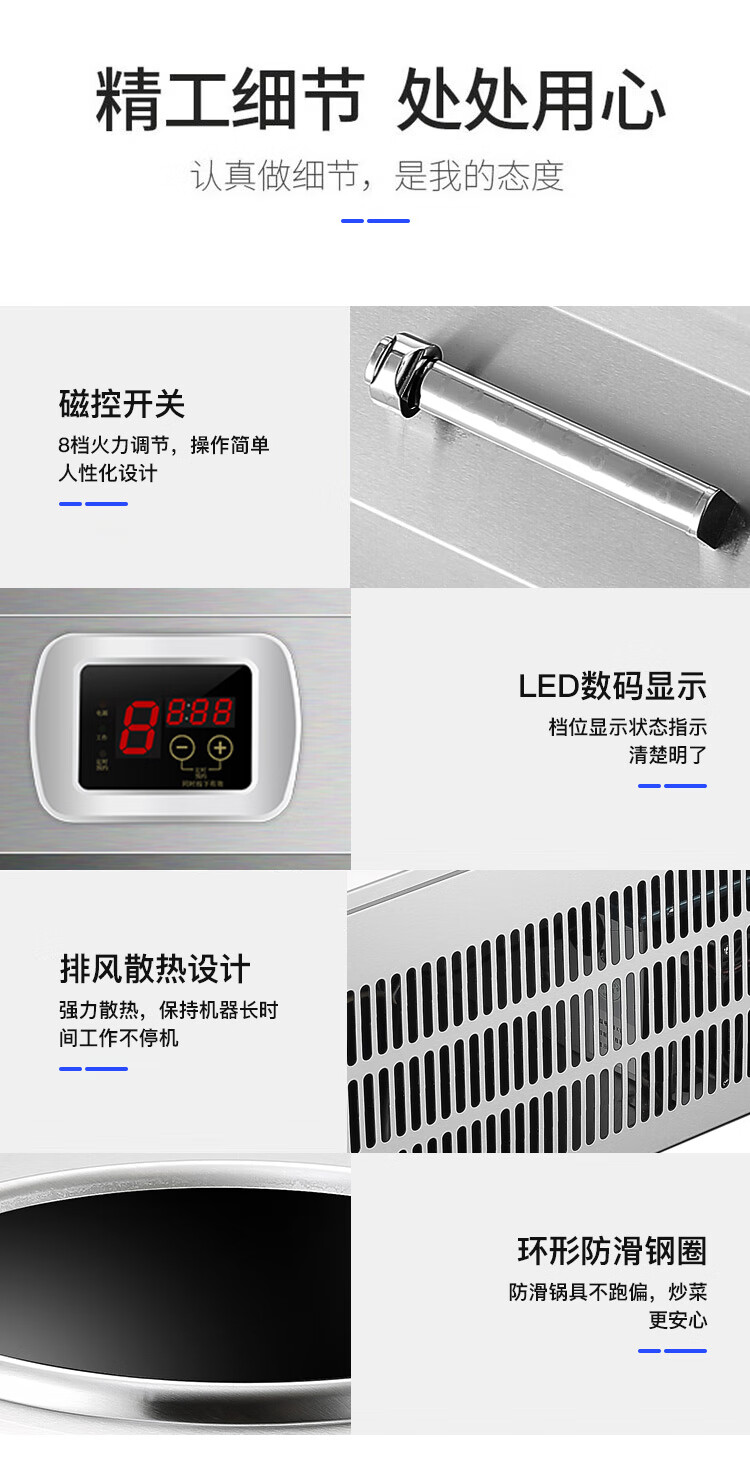 Stevison(史蒂芬) SDF-WS-AML8000 8000W磁控凹面电磁炉 电压:220V 功率:8kw 材质:拉丝不锈钢