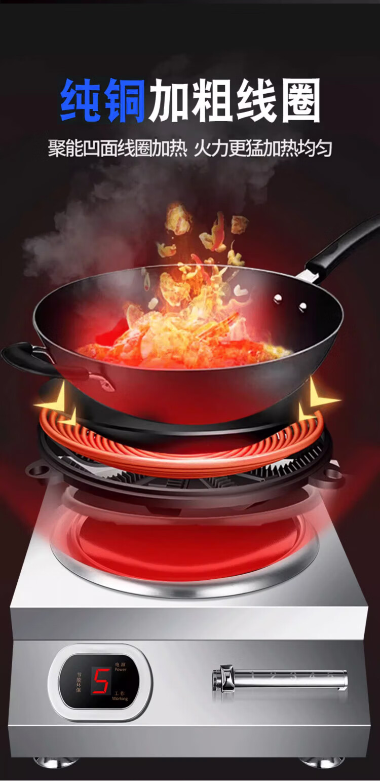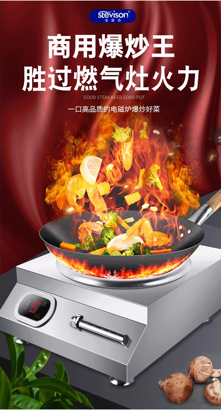 Stevison(史蒂芬) SDF-CK5000W(220V)-AM 台式凹面电磁炉(含炒锅) 220V 5000W 磁控款 不锈钢