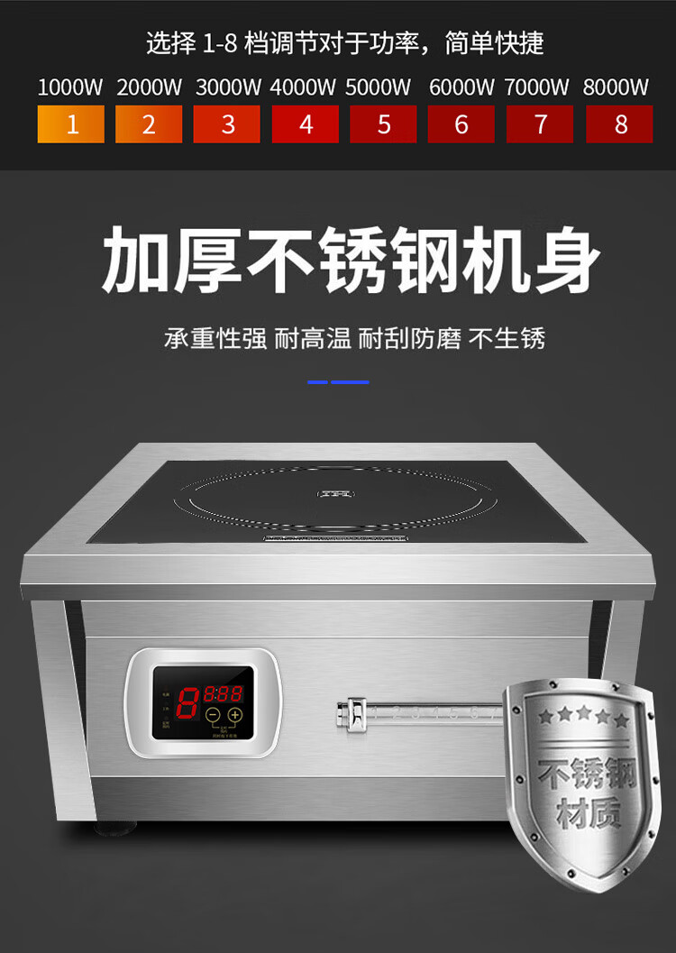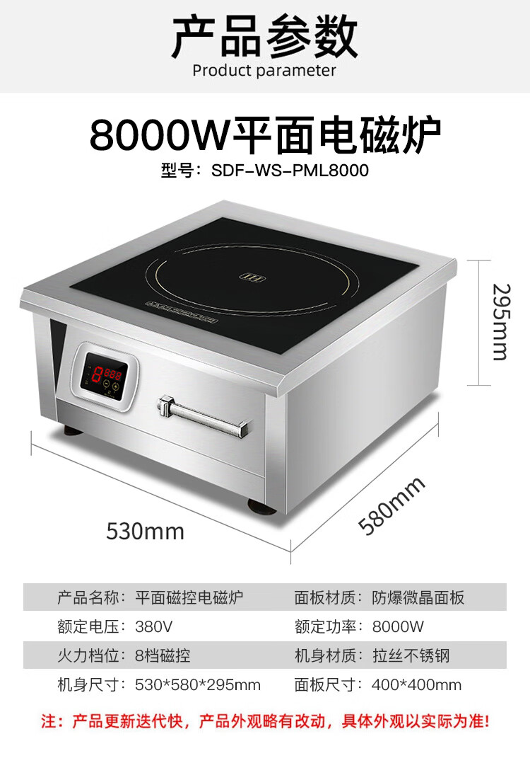 Stevison(史蒂芬) SDF-WS-PML8000 8000W磁控平面电磁炉 电压:220V 功率:8kw 材质:拉丝不锈钢