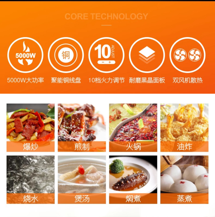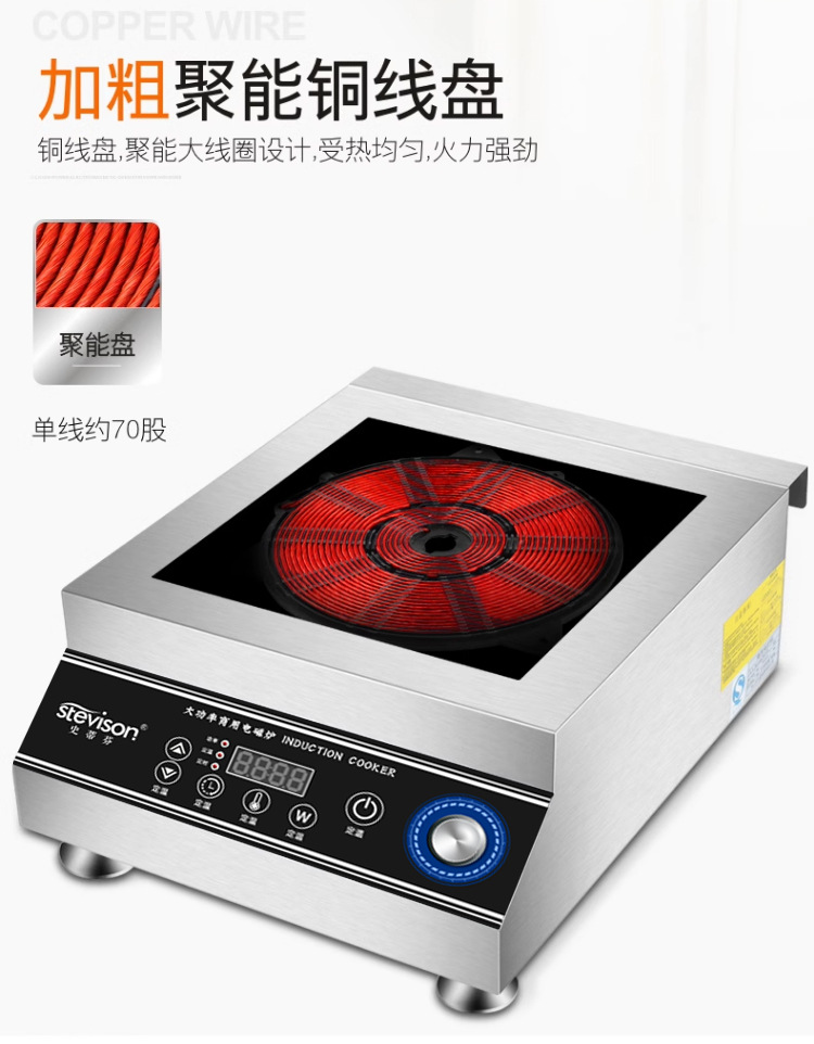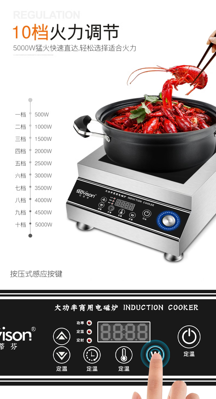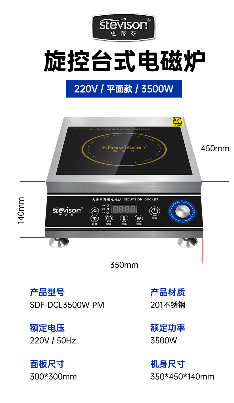Stevison(史蒂芬) SDF-DCL3500W-PM 台式平面电磁炉 220V 3500W 双控开关 不锈钢