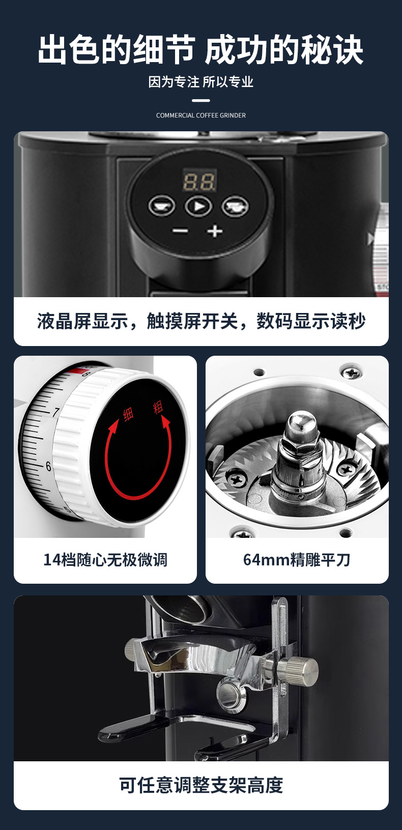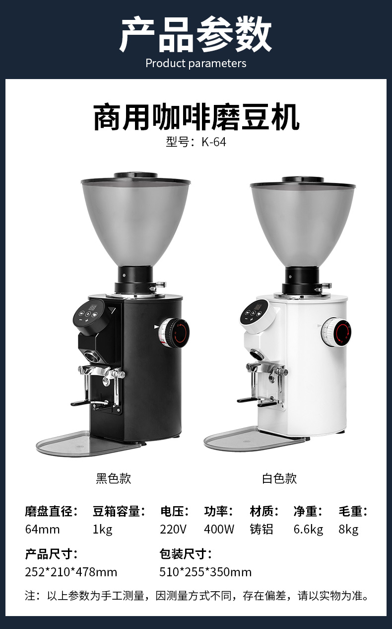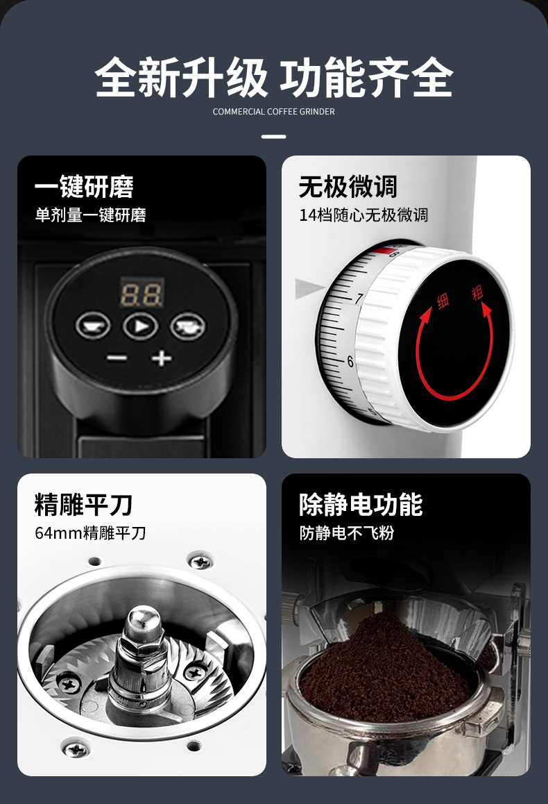 Stevison(史蒂芬) K-64 商用磨豆机电压:220V 功率:400W不锈钢和喷涂表面