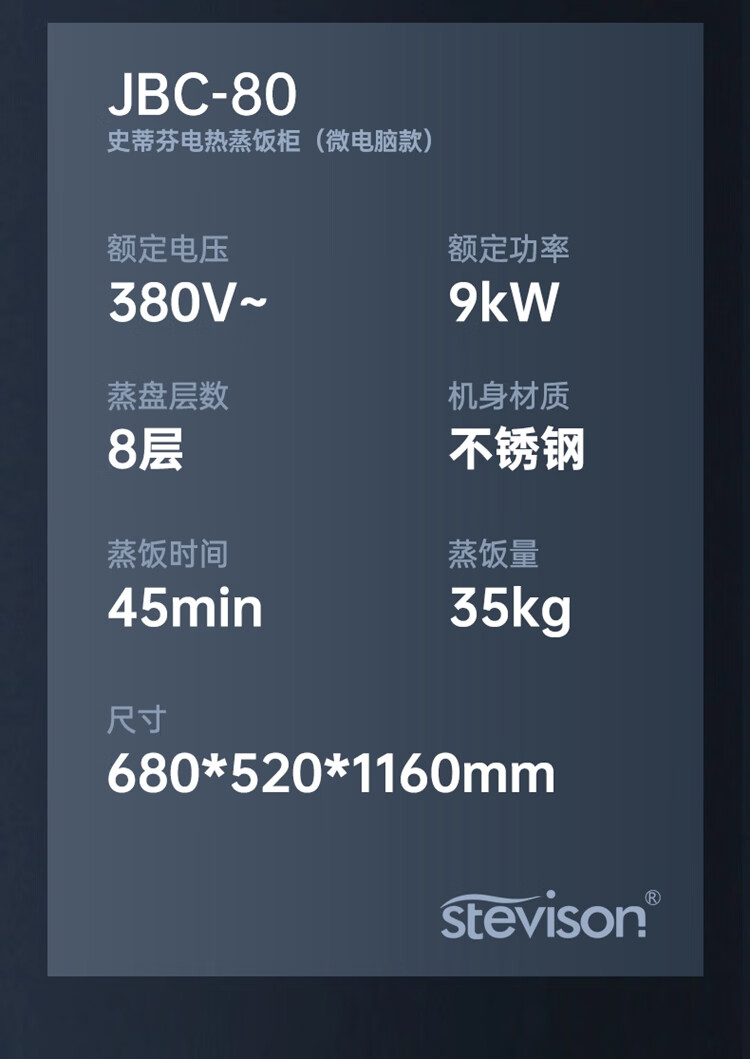 Stevison(史蒂芬) JBC-80 微电脑款蒸饭柜(单门8盘) 电加热 带定时定温 不锈钢