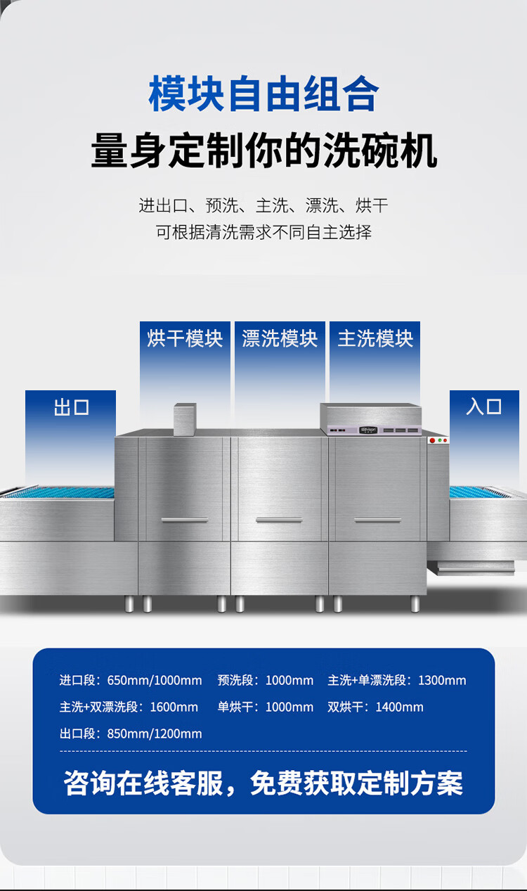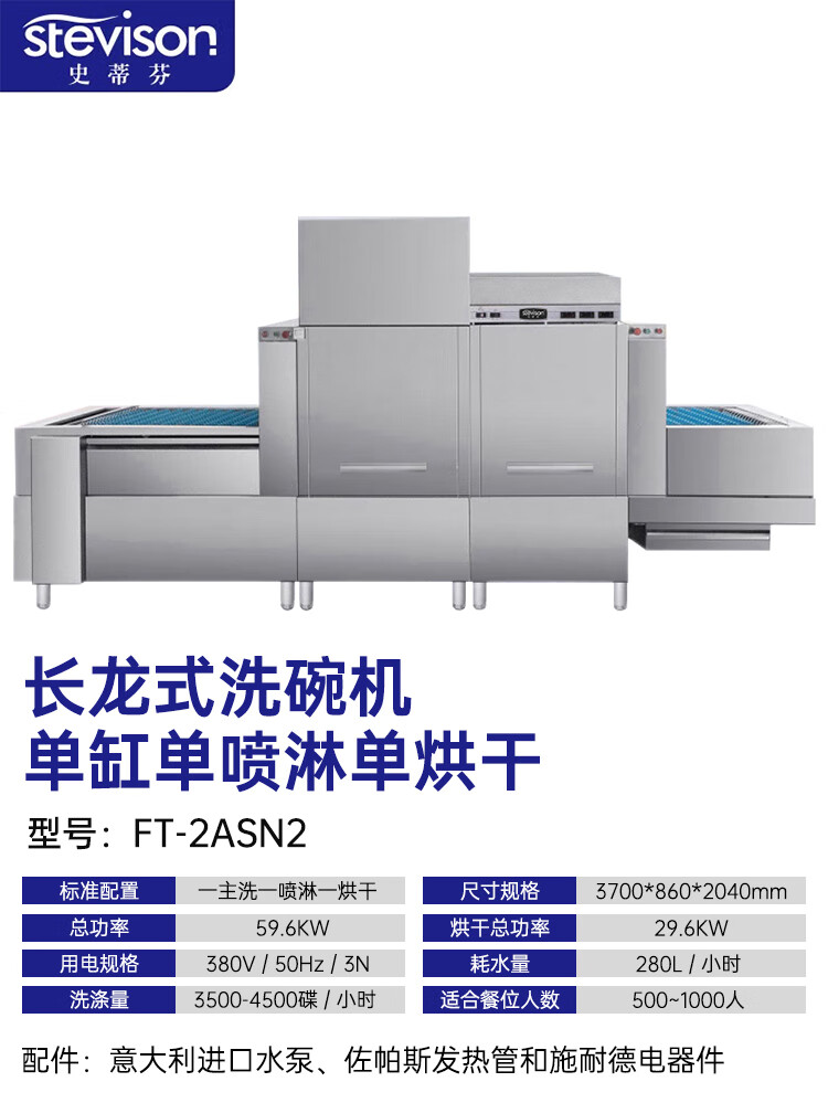 Stevison(史蒂芬) FT-2ASN2 长龙式洗碗机 商用洗碗机 大型酒店食堂餐厅饭店大容量刷碗机厨房设备 单缸单喷带烘干 380V 不锈钢