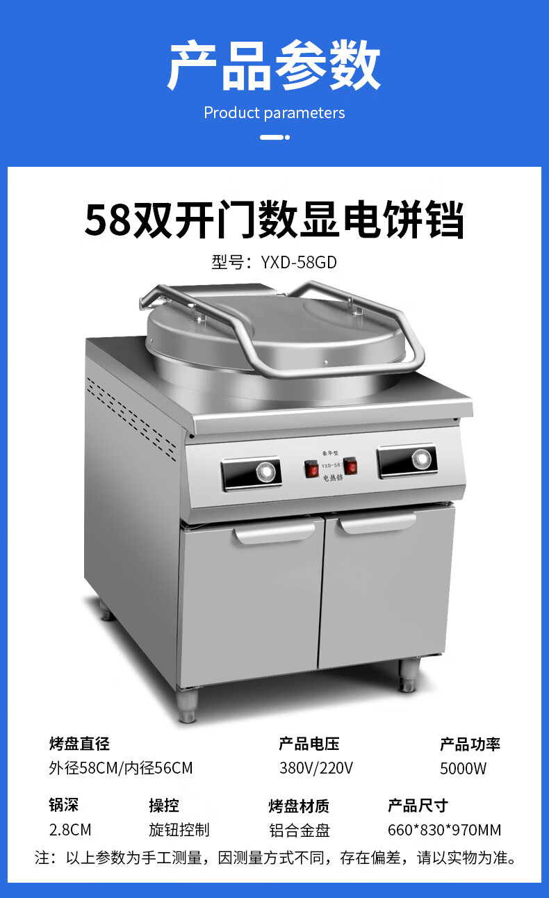 Stevison(史蒂芬) YXD-58GD 悬浮款柜式58电饼铛 煎饼机数显款电压:220V或380V可选 双面加热 不锈钢
