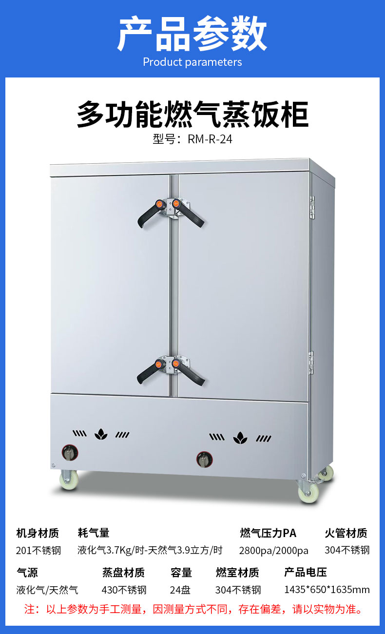 Stevison(史蒂芬) RM-R-24燃气款24盘蒸饭柜(201) 按压式电子点火,带熄火保护