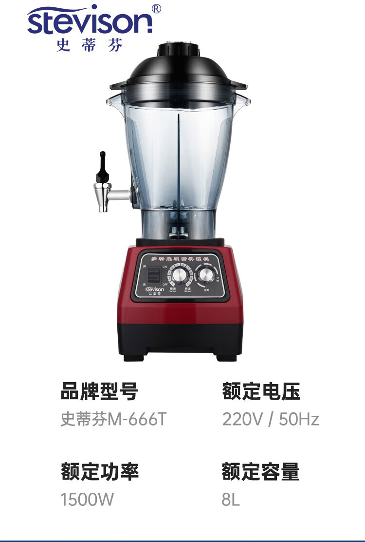 Stevison(史蒂芬) M-666T 商用破壁机 豆浆机两用料理机8L 食品级PP
