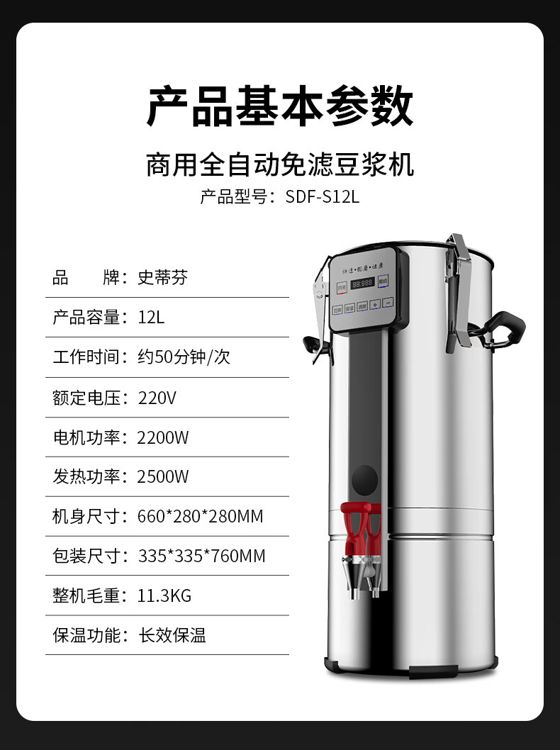 Stevison(史蒂芬) SDF-S12L 商用豆浆机12L 豆浆机商用 全自动豆浆机 大容量 豆浆机 豆浆机早餐店一体机带保温功能 220V 不锈钢