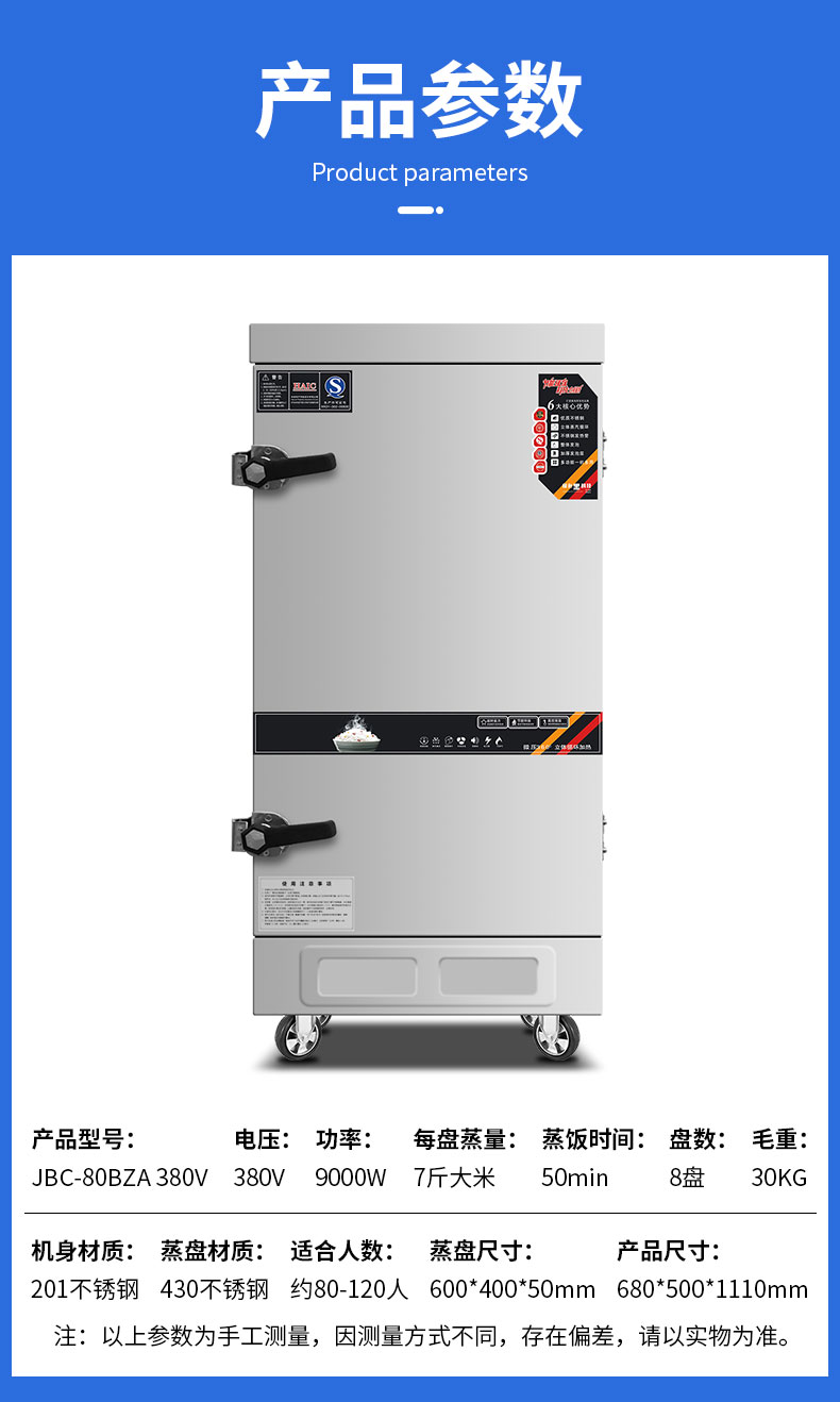 Stevison(史蒂芬) JBC-80BZA 380V 经济款蒸饭柜(单门8盘)电加热 201不锈钢