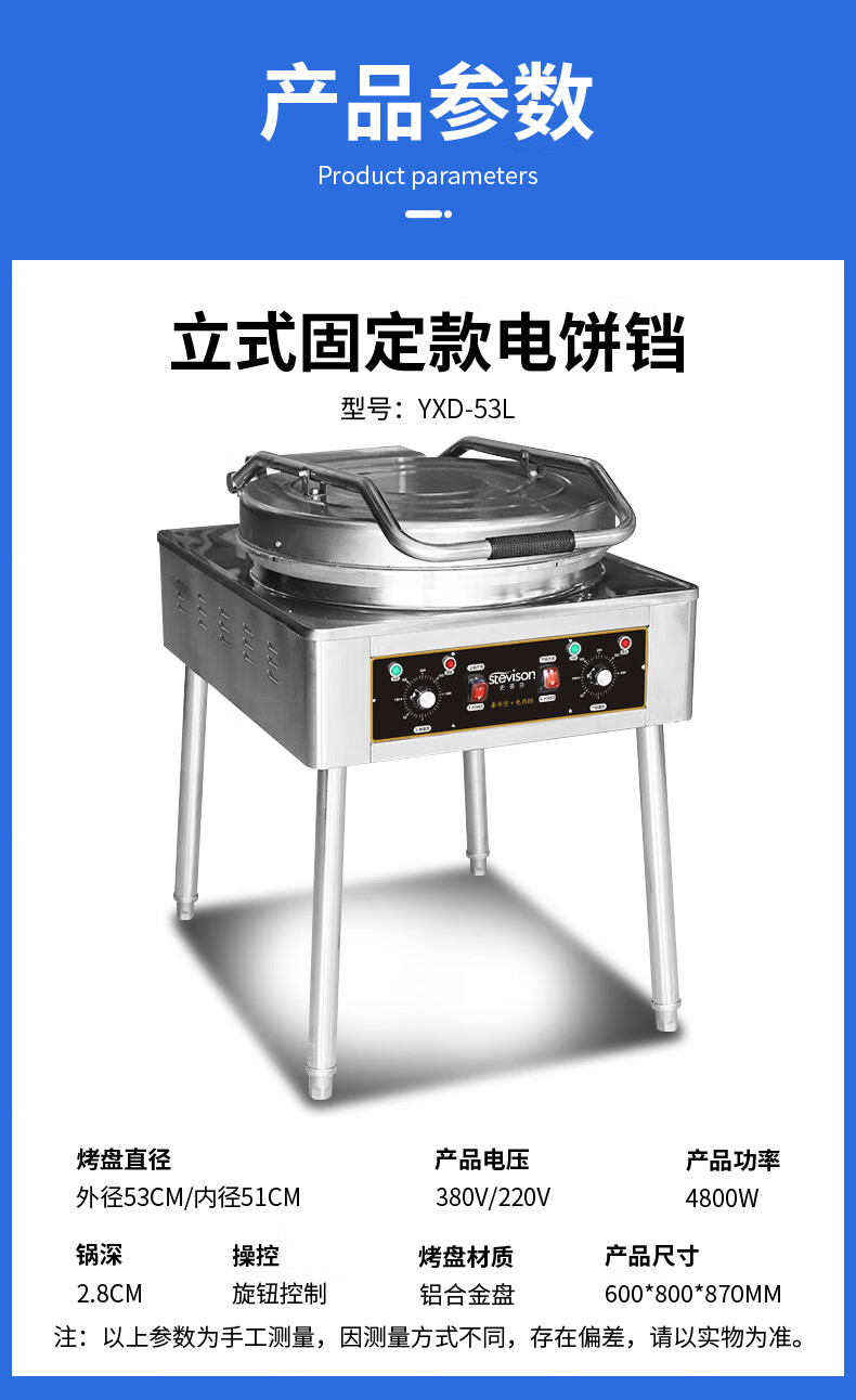 Stevison(史蒂芬) YXD-53L 悬浮款53旋钮电饼铛 煎饼机电压:220V或380V可选 立式台式两用 双面加热 不锈钢