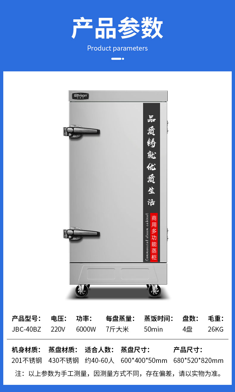 Stevison(史蒂芬) JBC-40BZ 标准款蒸饭柜(单门4盘)电加热 201不锈钢