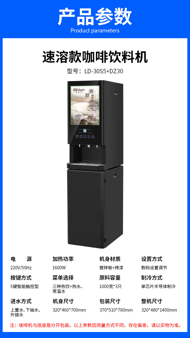 Stevison(史蒂芬) LD-30S5+DZ30 立式咖啡机 单热速溶款 (配DZ30底柜)镀锌板+烤漆