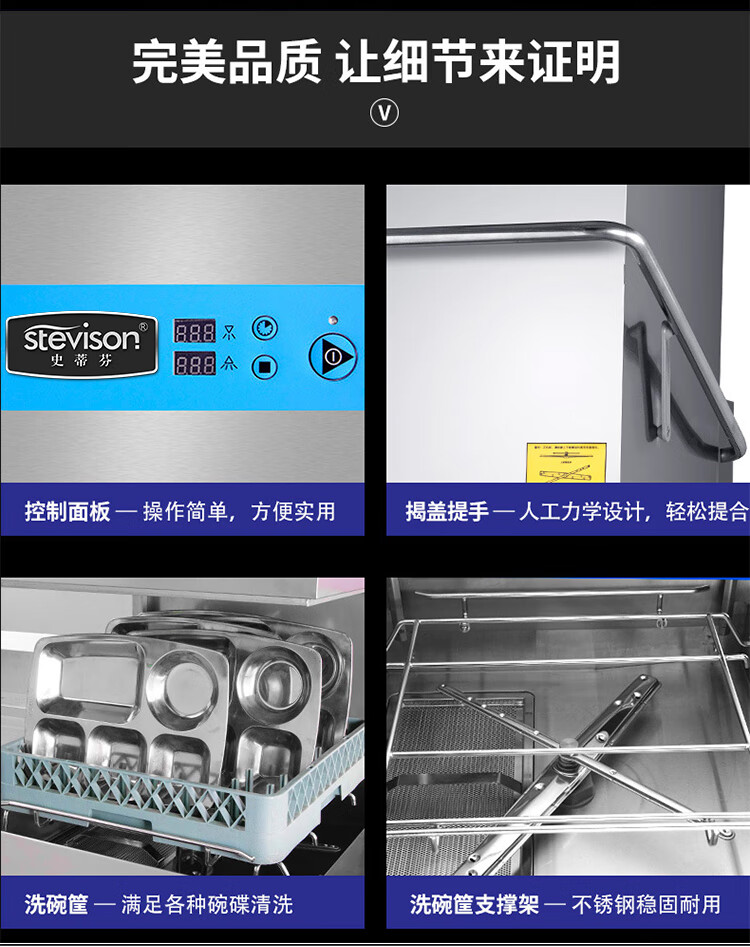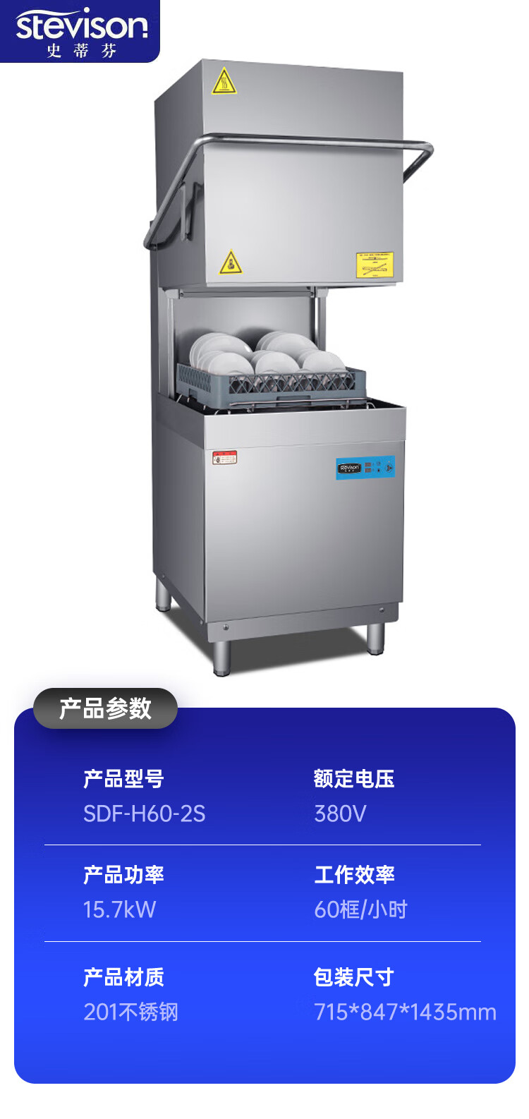 Stevison(史蒂芬) SDF-H60-2S 揭盖式洗碗机(双泵) 商用洗碗机全自动大型酒店餐厅学校食堂专用大功率喷淋刷碗设备 双泵款 380V 304不锈钢