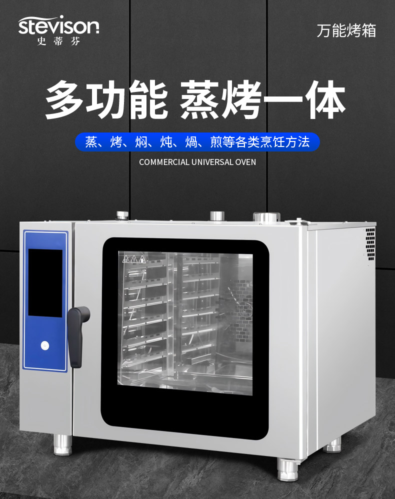 Stevison(史蒂芬) T-DZK-6C 万能烤箱6层 (触摸屏) 电压:380V 功率:9.37KW 不锈钢