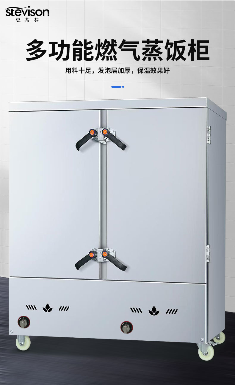 Stevison(史蒂芬) RM-R-24燃气款24盘蒸饭柜(304) 按压式电子点火,带熄火保护