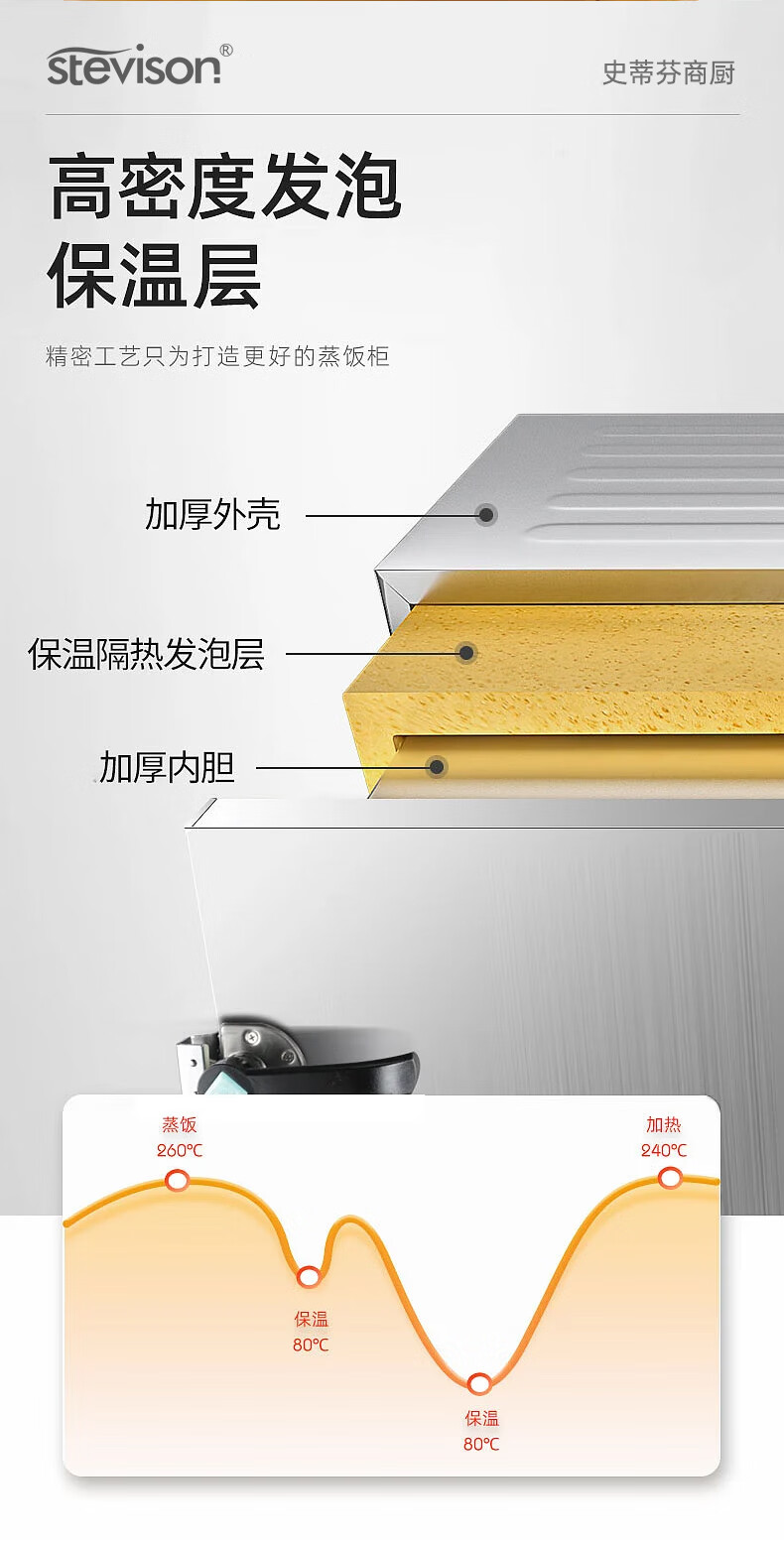 Stevison(史蒂芬) JBC-200 微电脑款蒸饭柜(双门24盘) 电加热 带定时定温 不锈钢