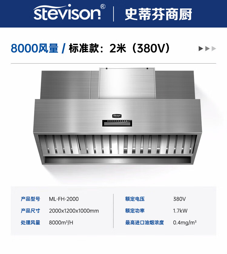 Stevison(史蒂芬) ML-FH-2000 油烟净化一体机2米 风机电压380V,净化电压220V,处理风量8000m³/H 不锈钢