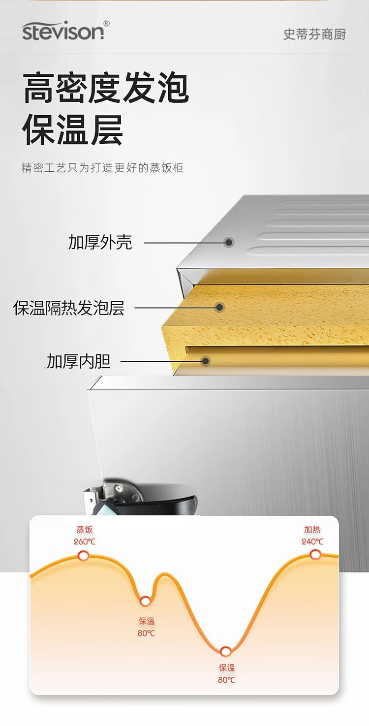 Stevison(史蒂芬) JBC-100 微电脑款蒸饭柜(单门10盘) 电加热 带定时定温 不锈钢