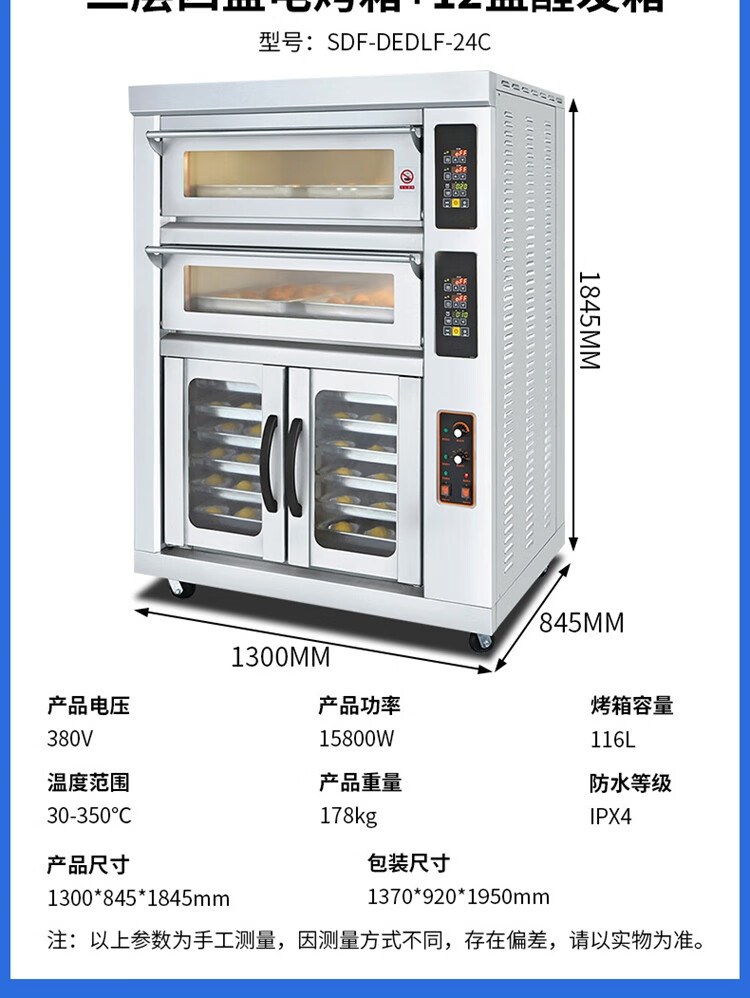Stevison(史蒂芬) SDF-DEDLF-24C 组合烤箱(二层四盘电烤箱+12盘醒发箱) 电压:380V 3N~ 额定功率:15800W 烤箱容量:116L 不锈钢