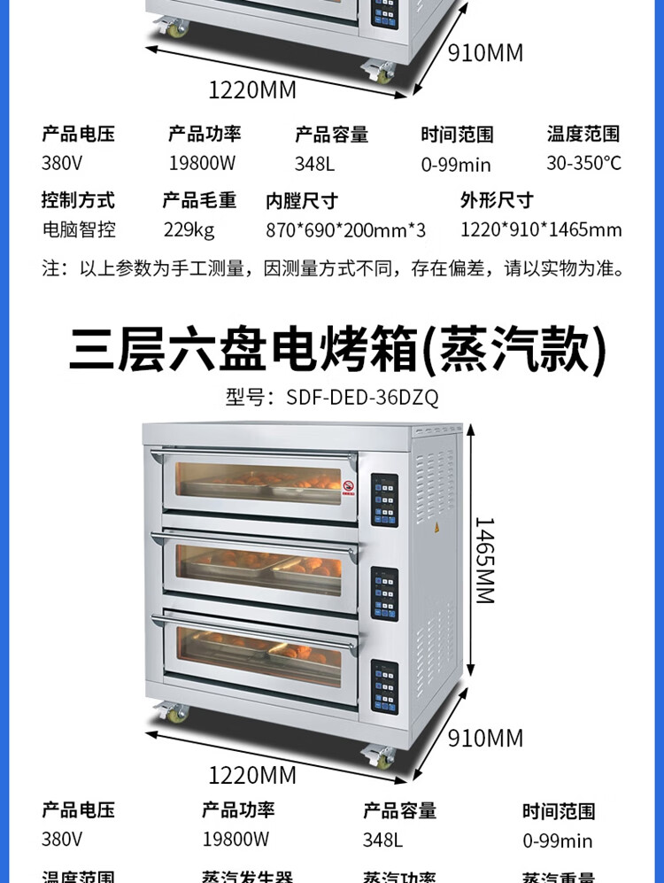 Stevison(史蒂芬) SDF-DED-24D 微电脑智控款二层四盘电烤箱 电压: 380V/3N50Hz 功率:13200W 容量:232L 不锈钢