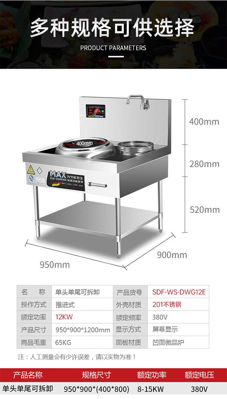Stevison(史蒂芬) SDF-WS-DWG12E 单头单尾拆卸款小炒炉 电压380V 功率12KW 400微晶板 配500mm小炒锅 201不锈钢