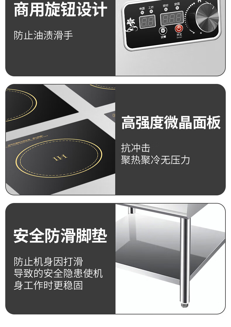 Stevison(史蒂芬) HL-4BZL-300X-355 豪华立式4头300电磁煲仔炉 220V/380V两种电压可选 3500W*4 双控开关 不锈钢