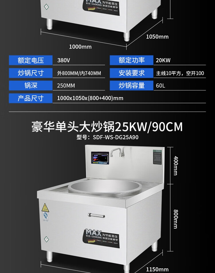 Stevison(史蒂芬) SDF-WS-DG20A80 电磁款单头大锅灶 电压:380V 功率:20KW