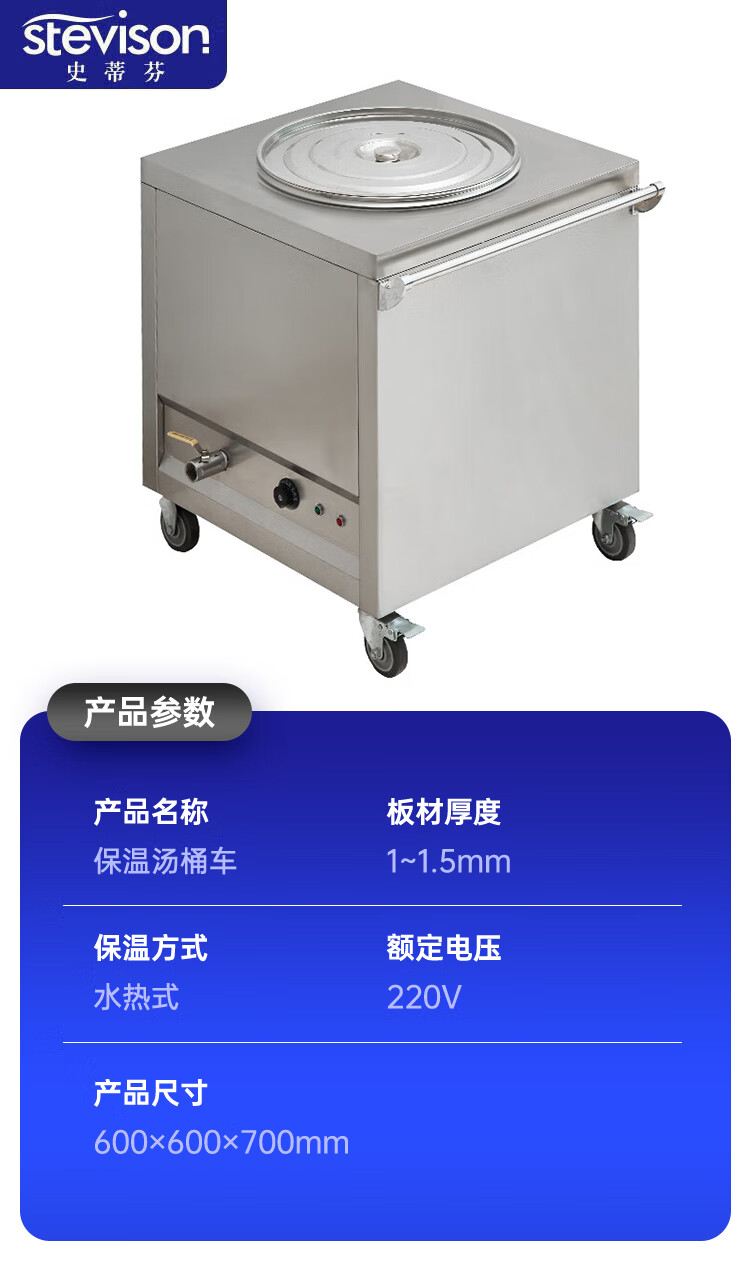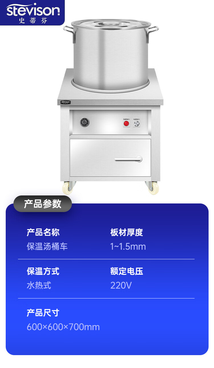Stevison(史蒂芬) SDF-3KW-GW 定制款暖汤车(配圆桶) 商用不锈钢保温粥车汤桶车汤饭车保温台售饭台餐车保温粥台 配圆桶 (定制款)220V 不锈钢