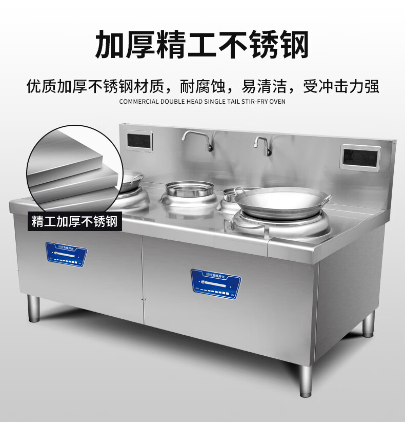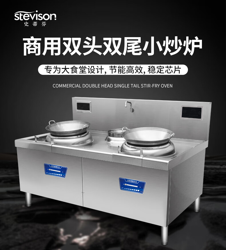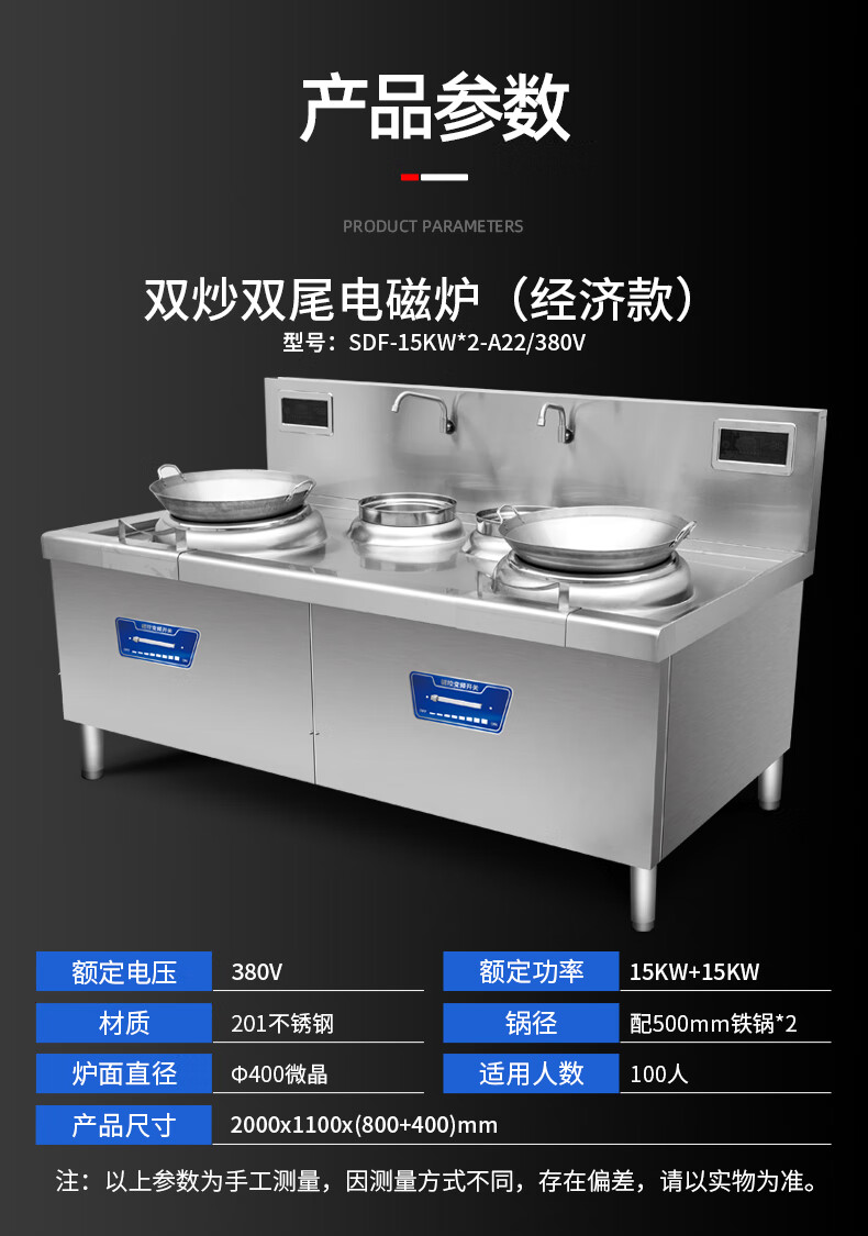 Stevison(史蒂芬) SDF-15KW*2-A22/380V 双炒双尾电磁炉(经济款) 电压380V 功率15KW+15KW 400微晶锅 配500mm铁锅*2 201不锈钢