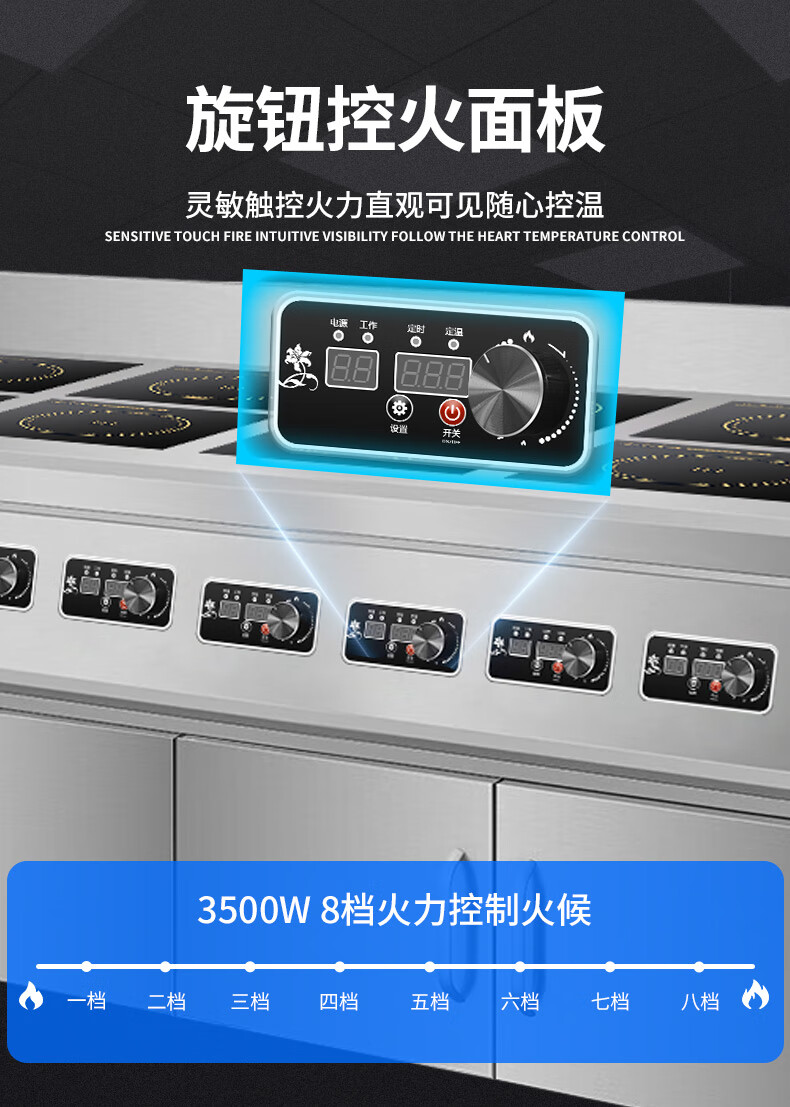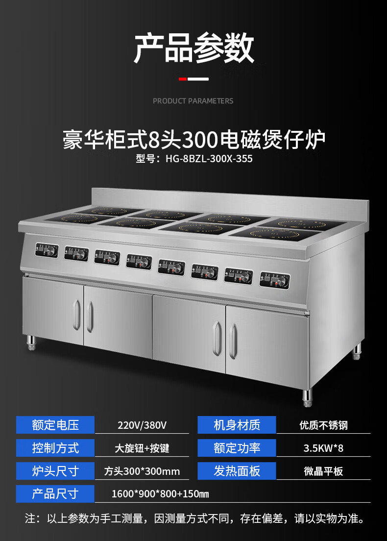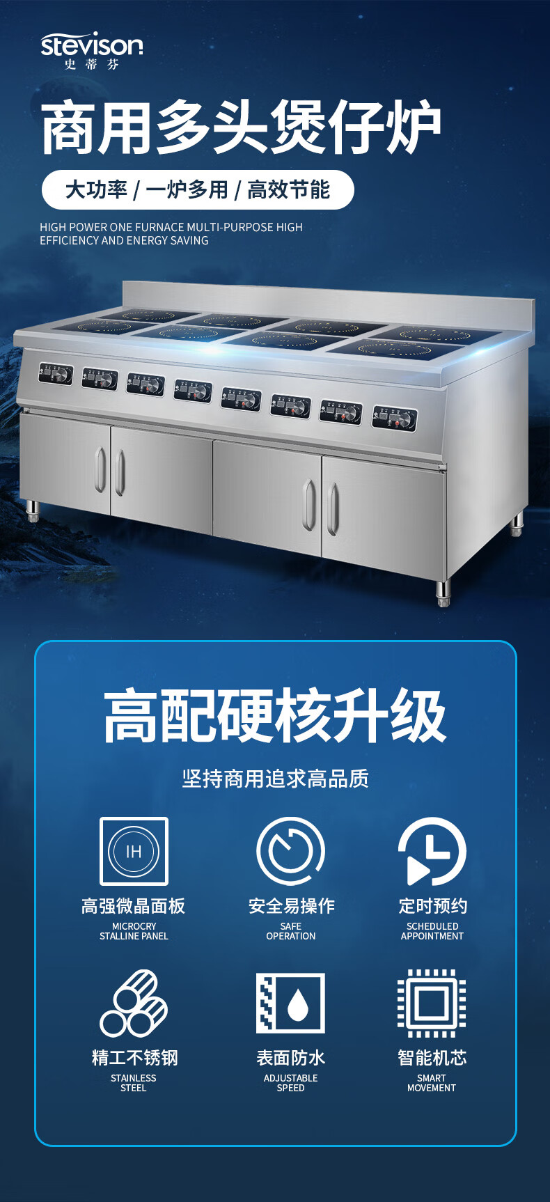 Stevison(史蒂芬) HG-8BZL-300X-355 豪华柜式8头300电磁煲仔炉 电压:380V 3500W*8 双控开关 不锈钢