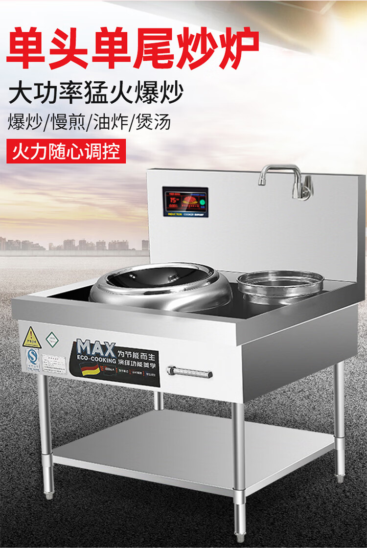 Stevison(史蒂芬) SDF-WS-DWG8E 单头单尾拆卸款小炒炉 电压380V 功率8KW 400微晶板 配500mm小炒锅 304不锈钢