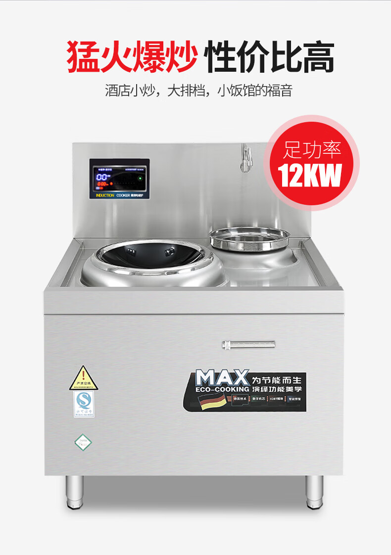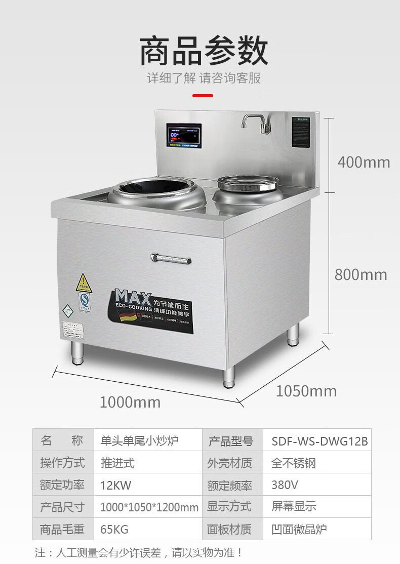 Stevison(史蒂芬) SDF-WS-DWG12B 电磁款单头单尾小炒炉 电压380V 功率12K 锅径500mm 201不锈钢