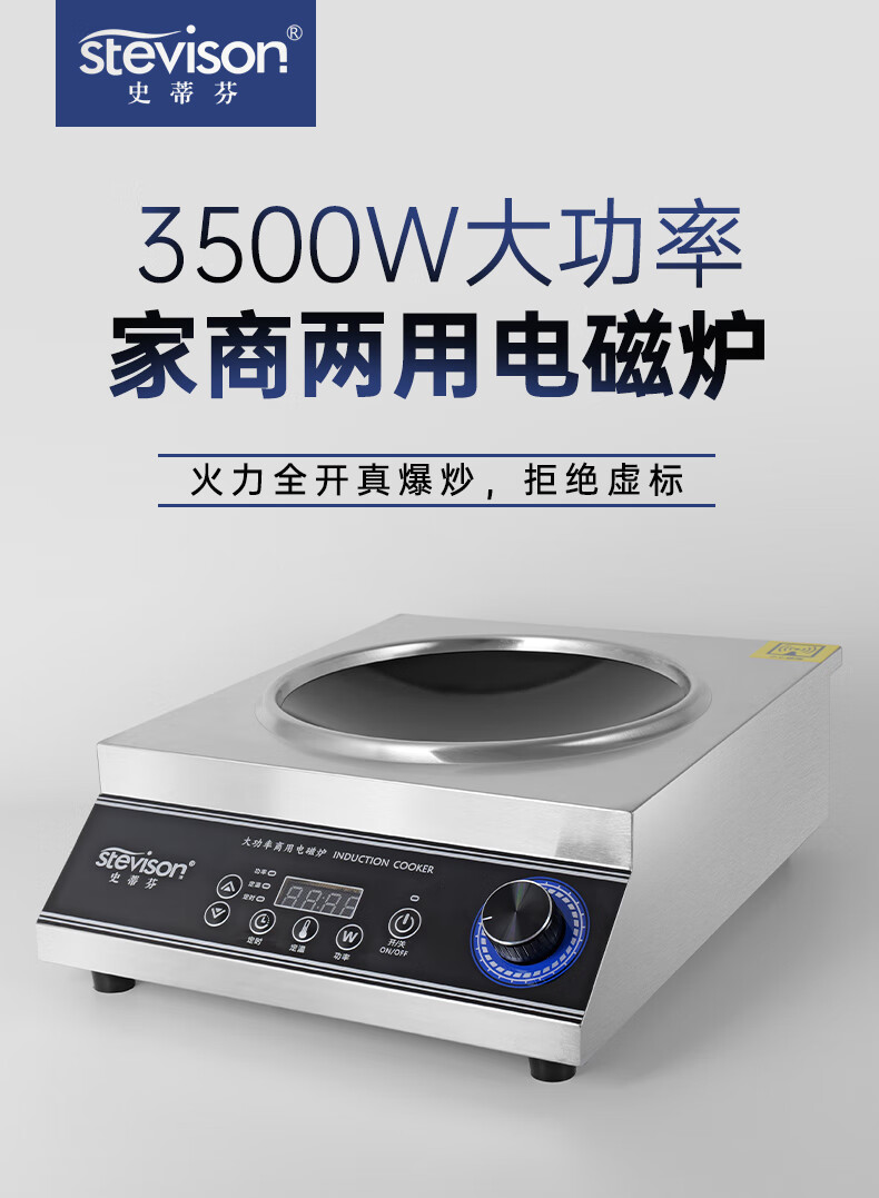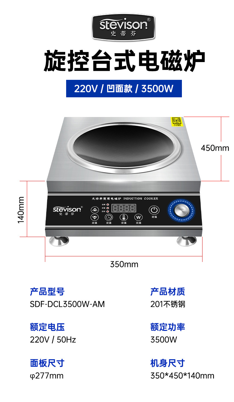 Stevison(史蒂芬) SDF-DCL3500W-AM 台式凹面电磁炉(不配锅) 220V 3500W 双控开关 不锈钢