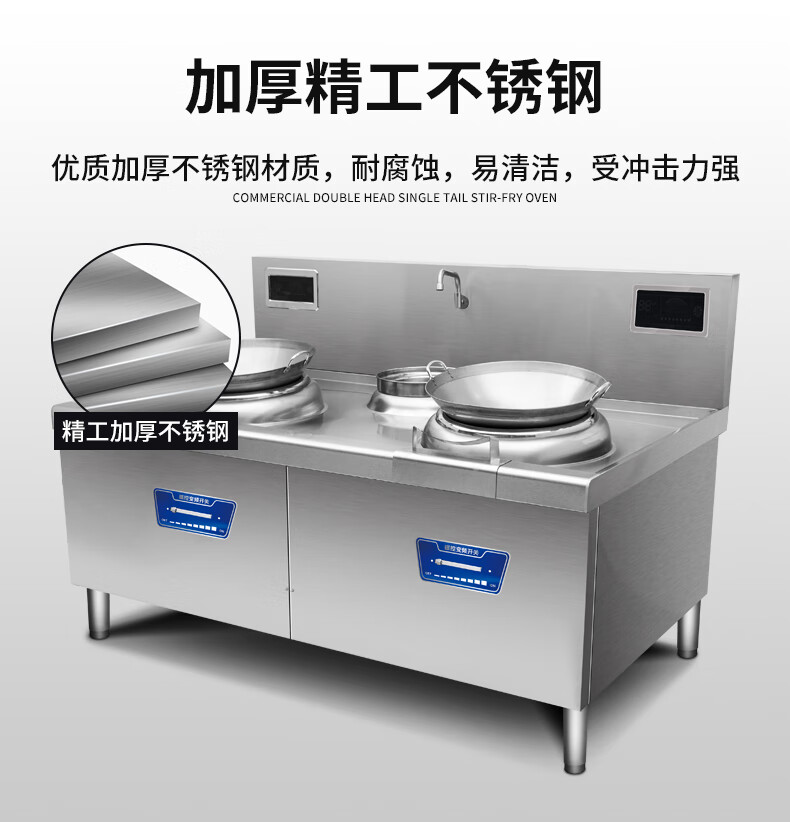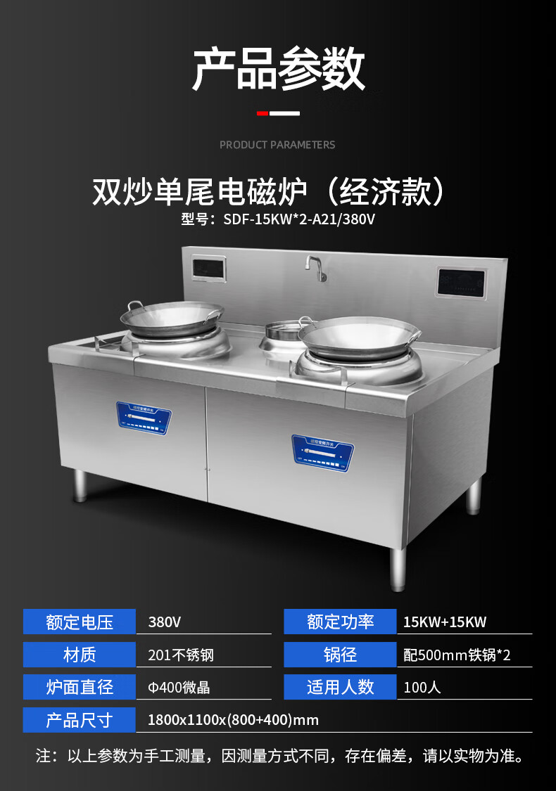 Stevison(史蒂芬) SDF-15KW*2-A21/380V 双炒单尾电磁炉(经济款) 电压380V 功率15KW+15KW 400微晶锅 配500mm铁锅*2 201不锈钢