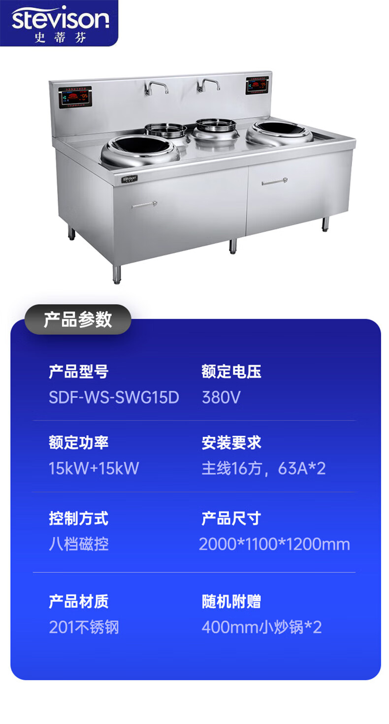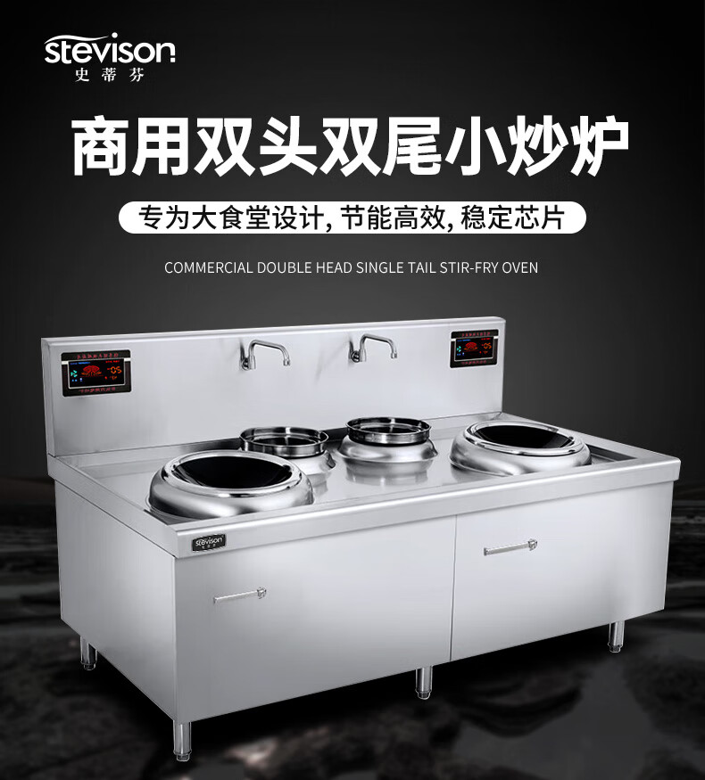 Stevison(史蒂芬) SDF-WS-SWG15D 双头双尾小炒炉 商用电磁炉大功率凹面电炒炉食堂猛火电磁灶饭店电炉灶台 电磁加热 380V 201不锈钢