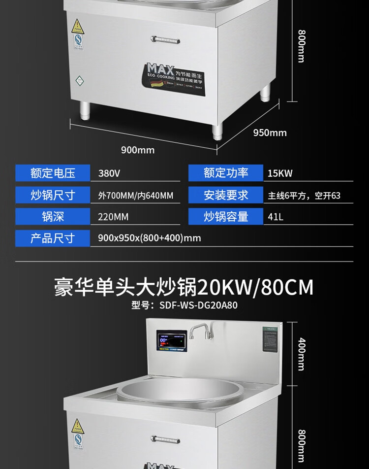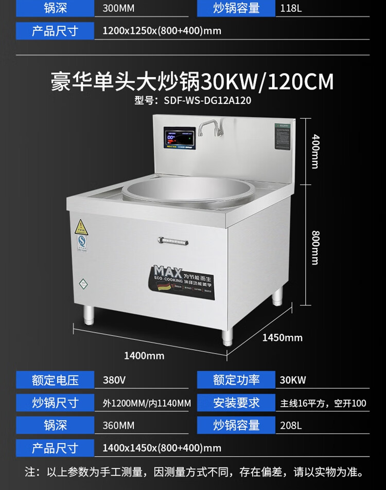 Stevison(史蒂芬) SDF-WS-DG30A100 电磁款单头大锅灶 电压:380V 功率:30KW 材质:201不锈钢