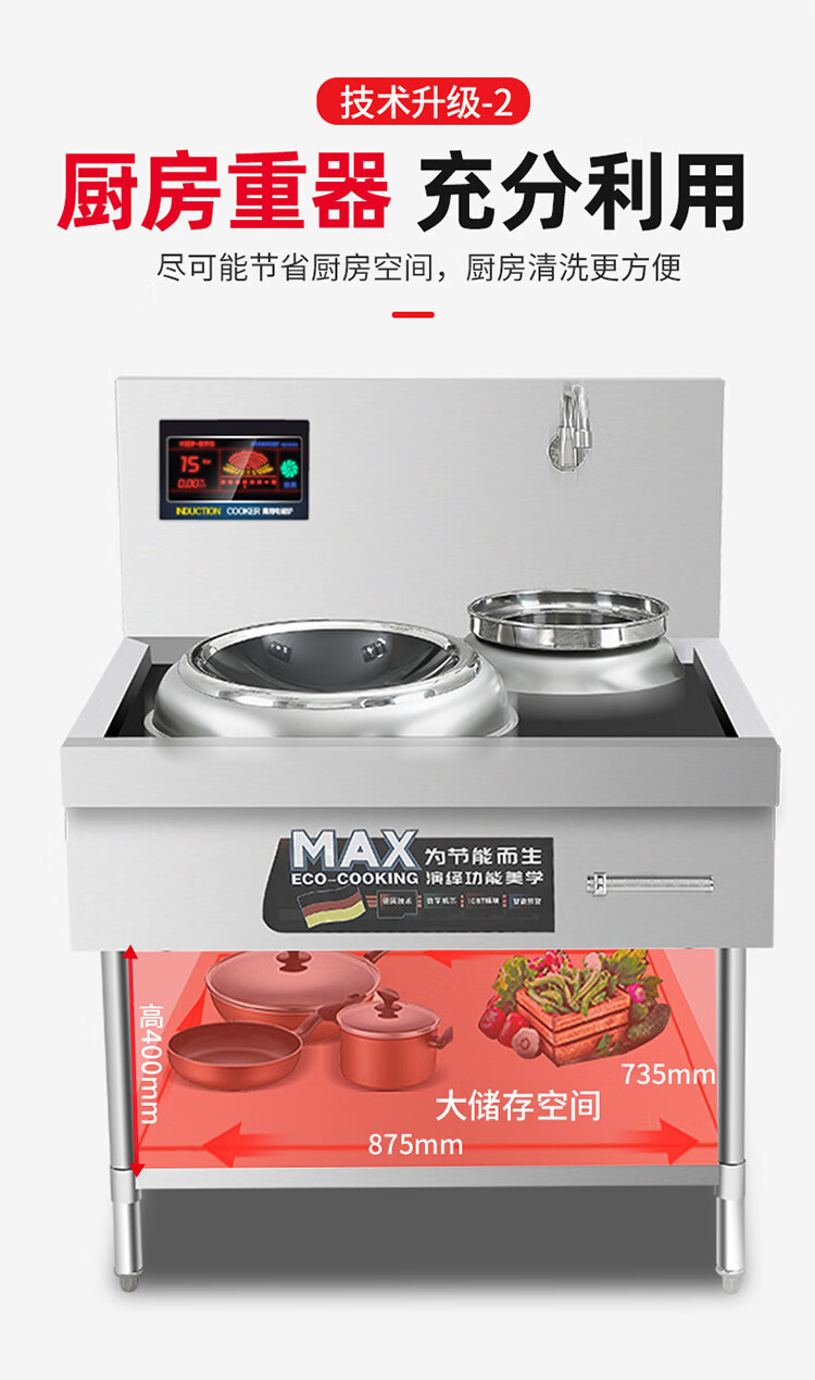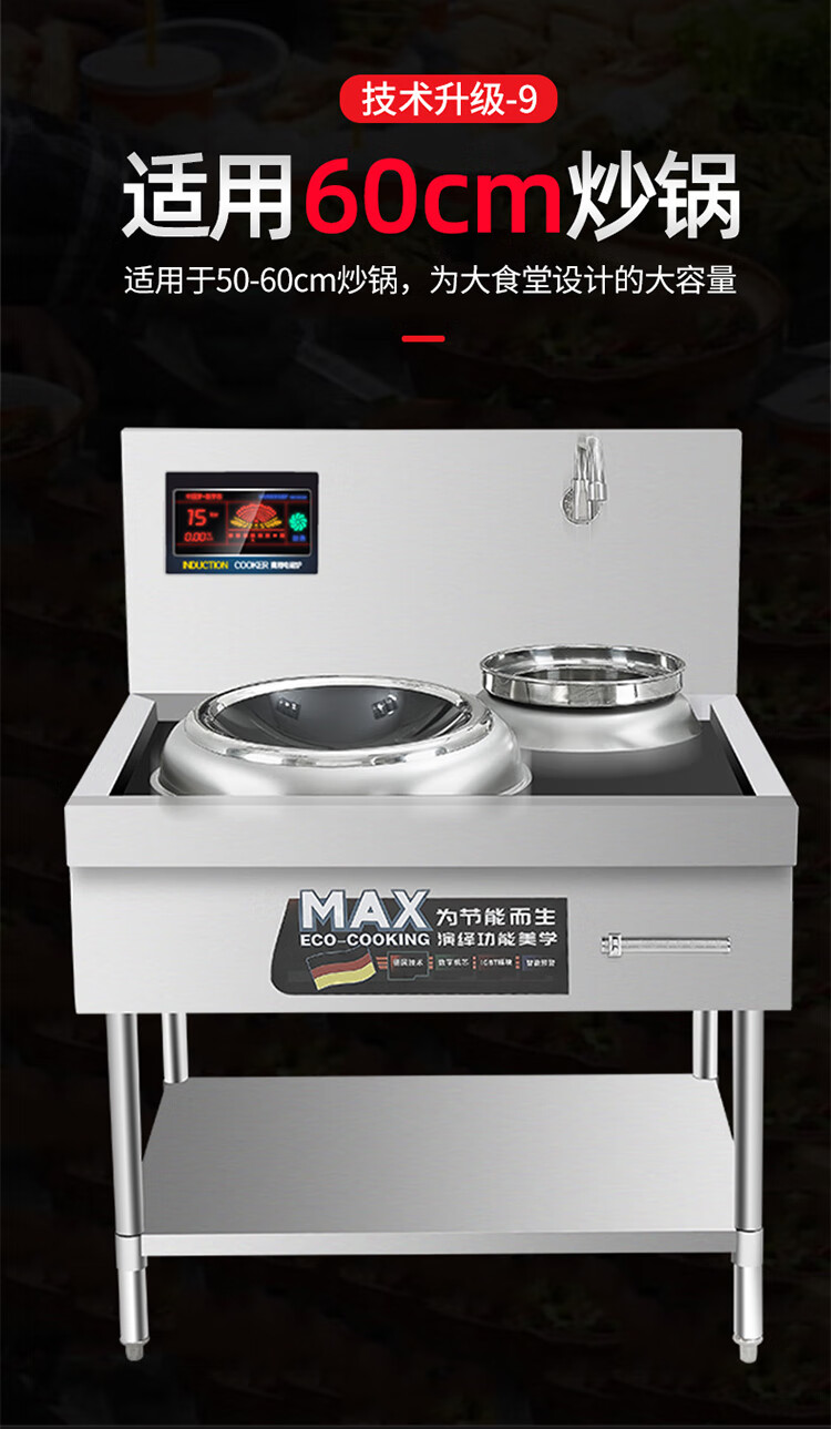 Stevison(史蒂芬) SDF-WS-DWG15E 单头单尾拆卸款小炒炉 电压380V 功率15KW 400微晶板 配500mm小炒锅 304不锈钢