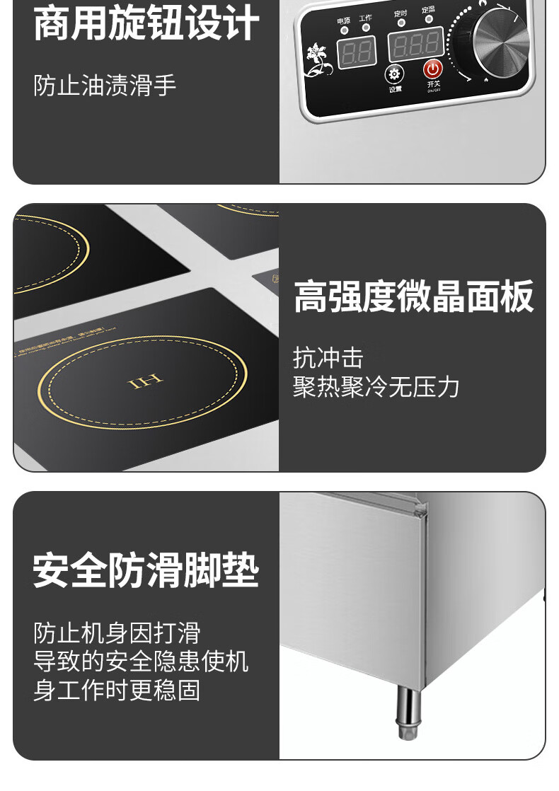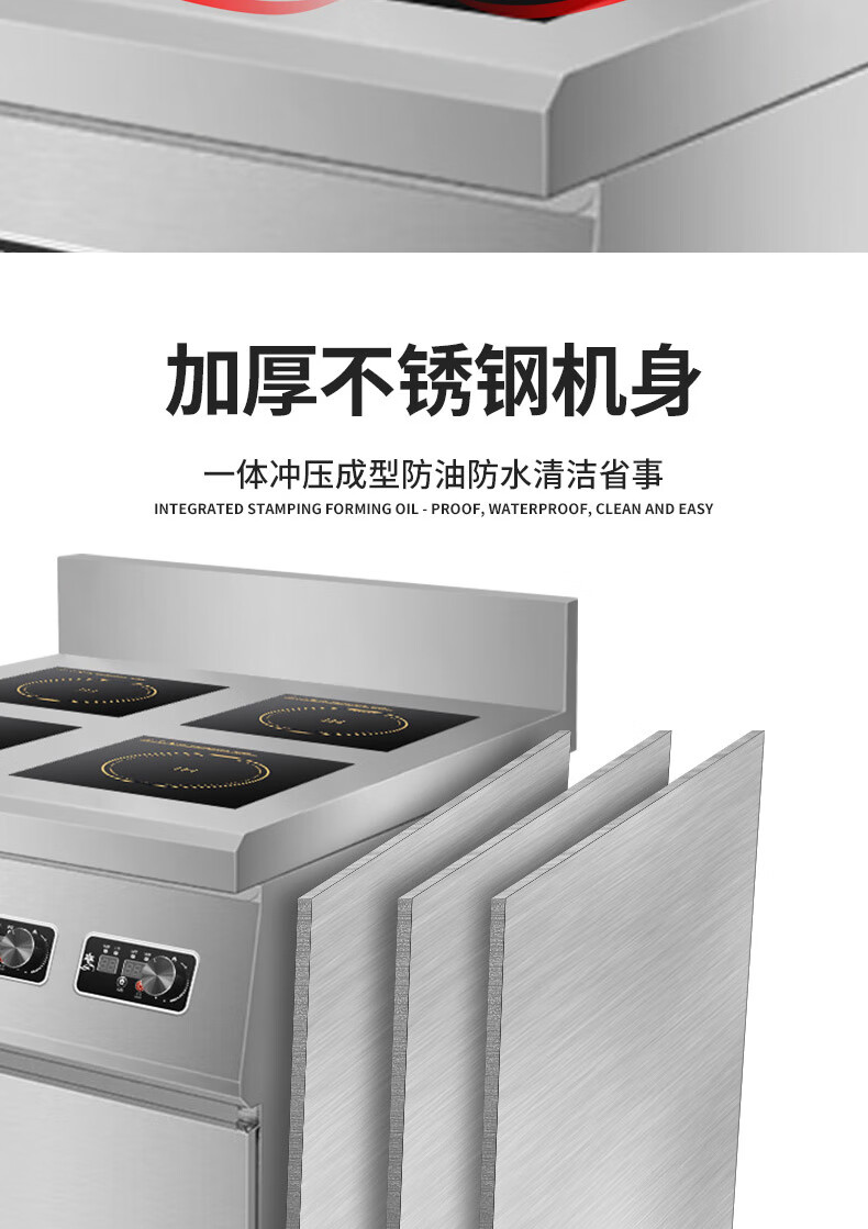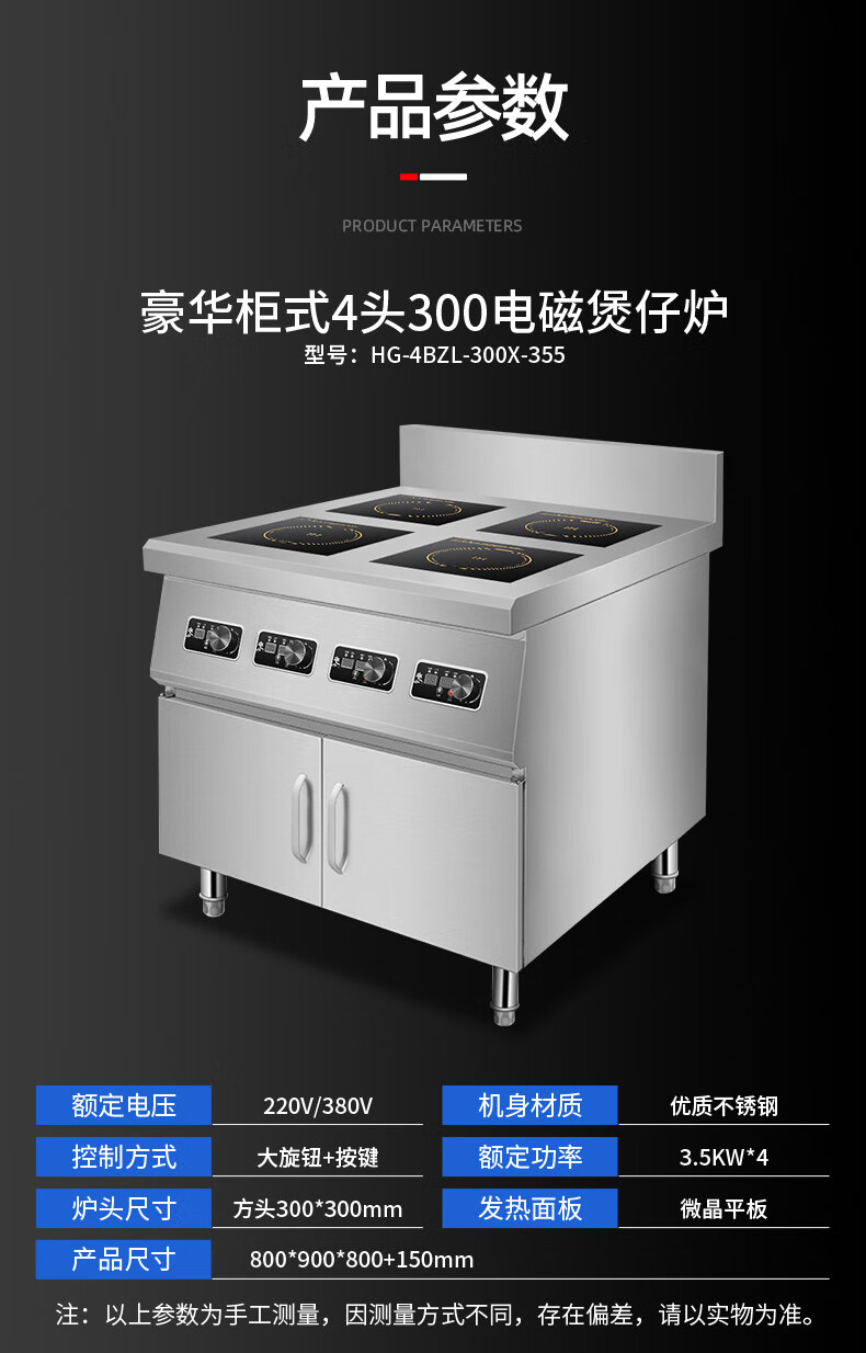Stevison(史蒂芬) HG-4BZL-300X-355 豪华柜式4头300电磁煲仔炉 220V/380V两种电压可选 3500W*4 双控开关 不锈钢