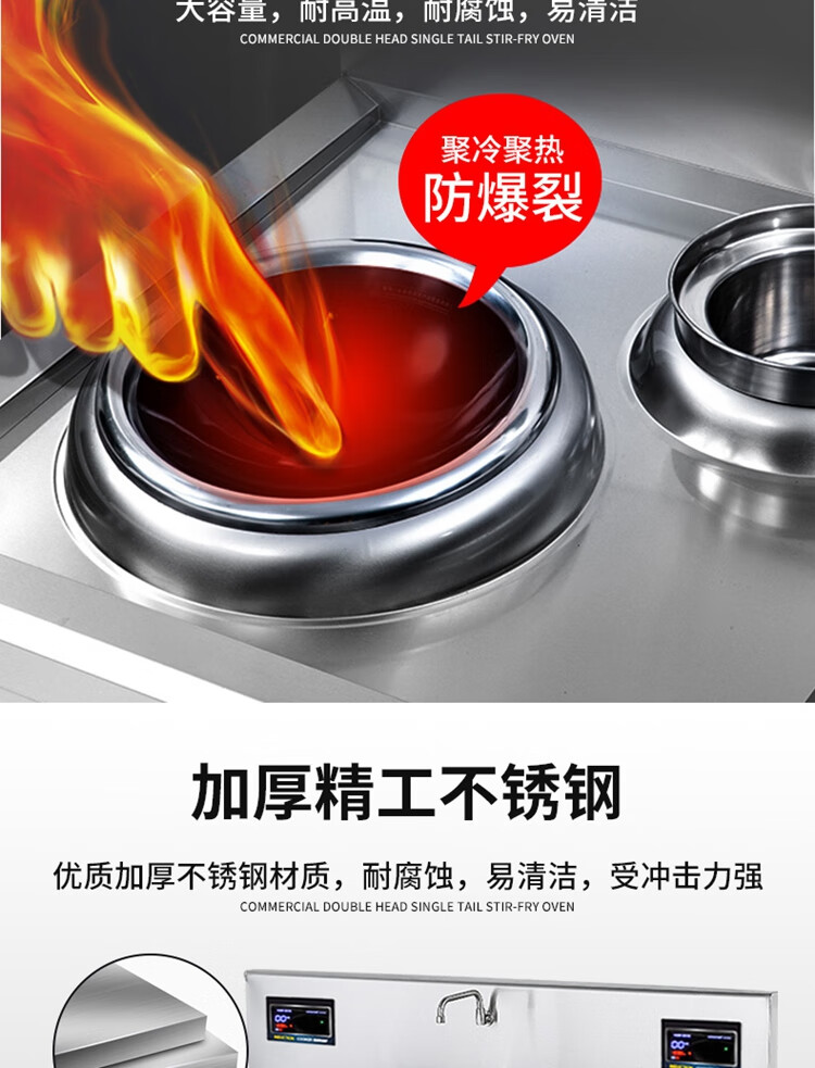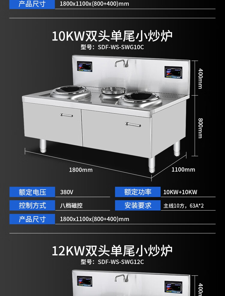 Stevison(史蒂芬) SDF-WS-SWG10C 电磁双头单尾小炒炉 电压:380V 功率:10KW+10KW 材质:201不锈钢