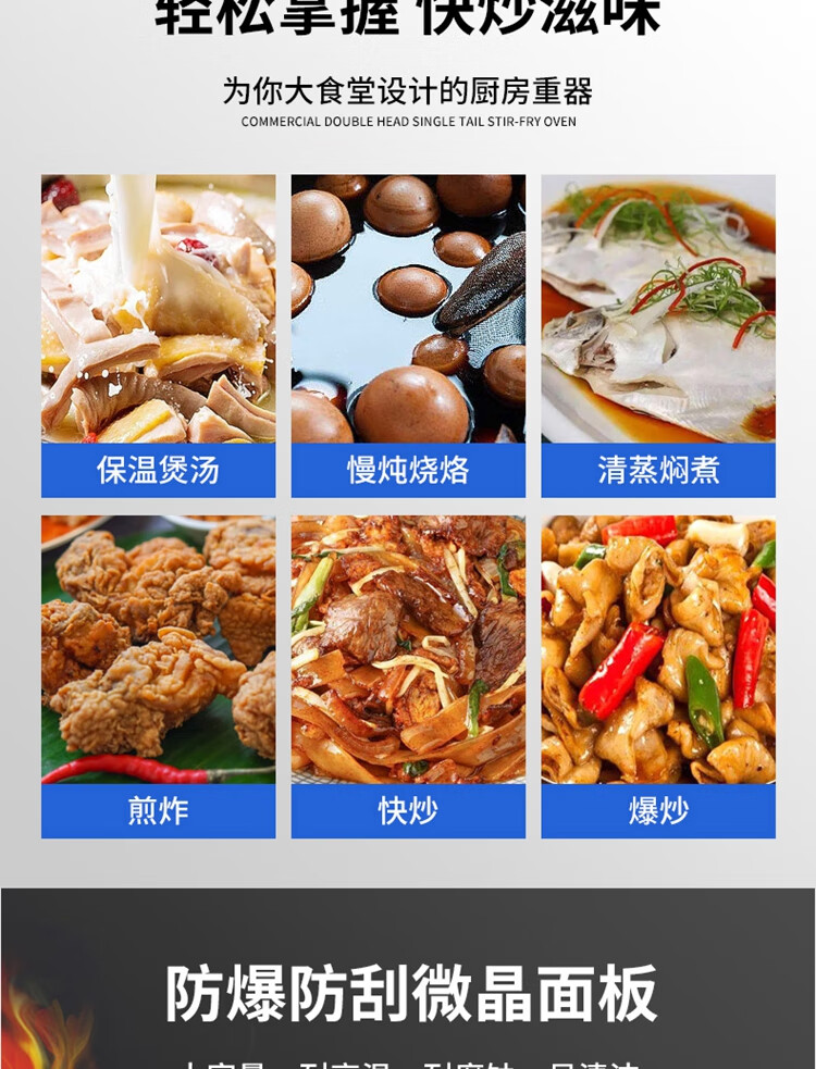 Stevison(史蒂芬) SDF-WS-SWG8C 电磁双头单尾小炒炉 电压:380V 功率:8KW+8KW 304不锈钢