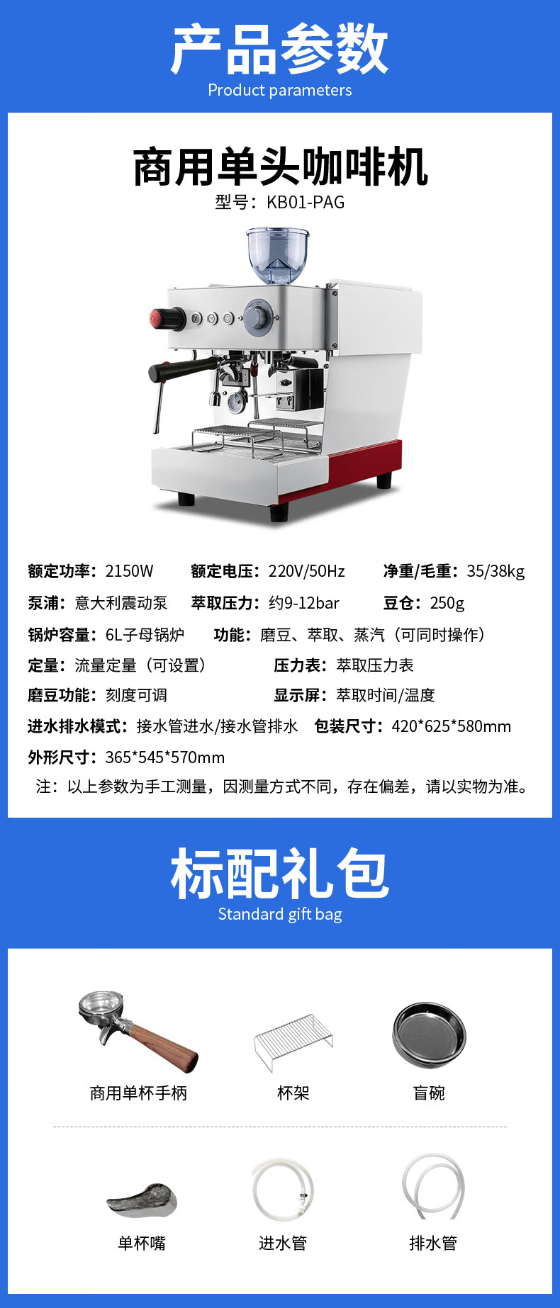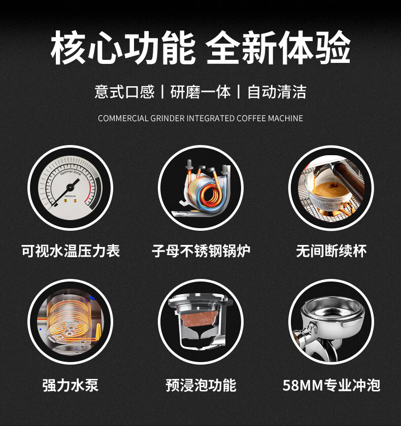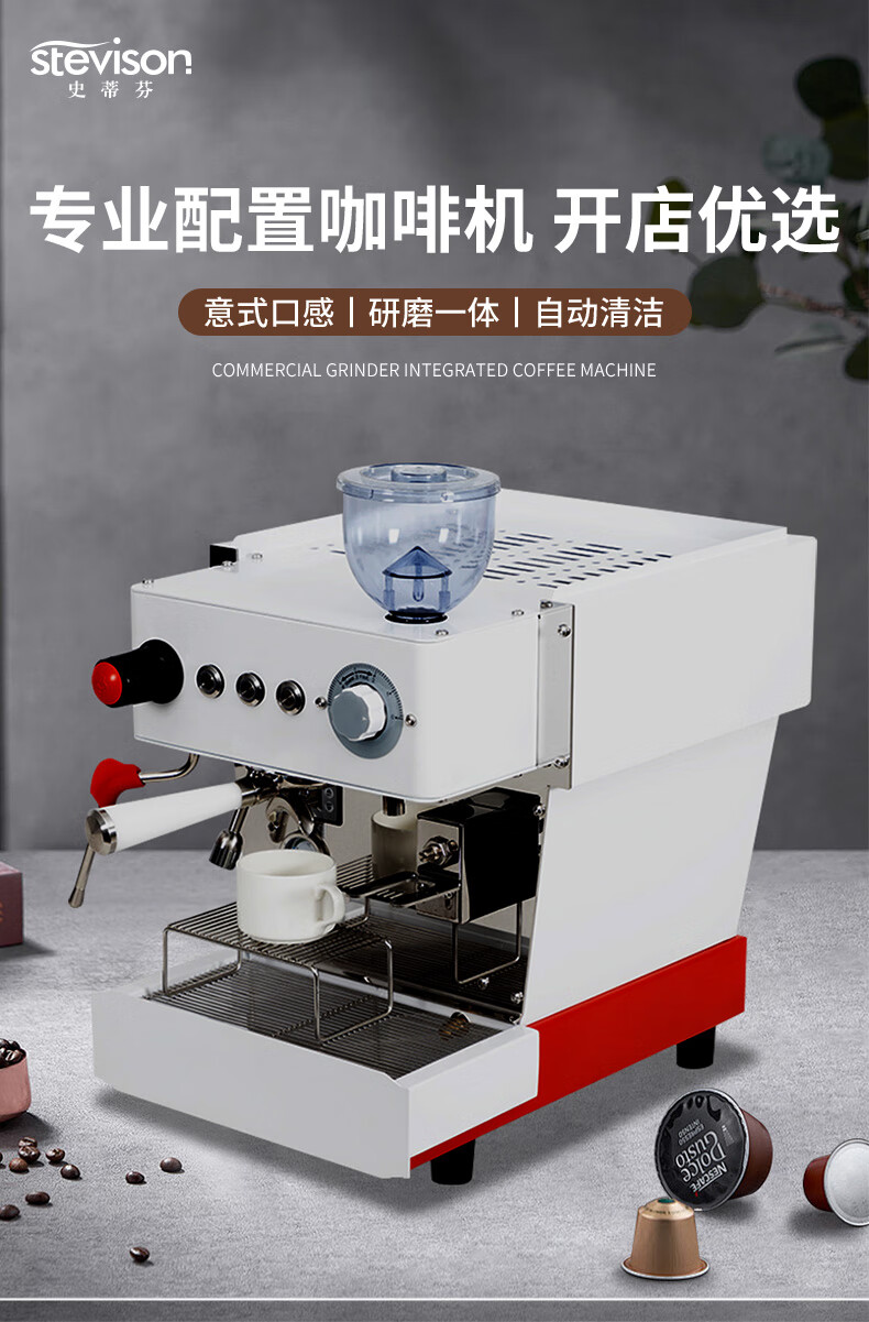 Stevison(史蒂芬) KB01-PAG 单头研磨咖啡一体机电压:220V 功率:2.25KW304不锈钢和喷涂表面