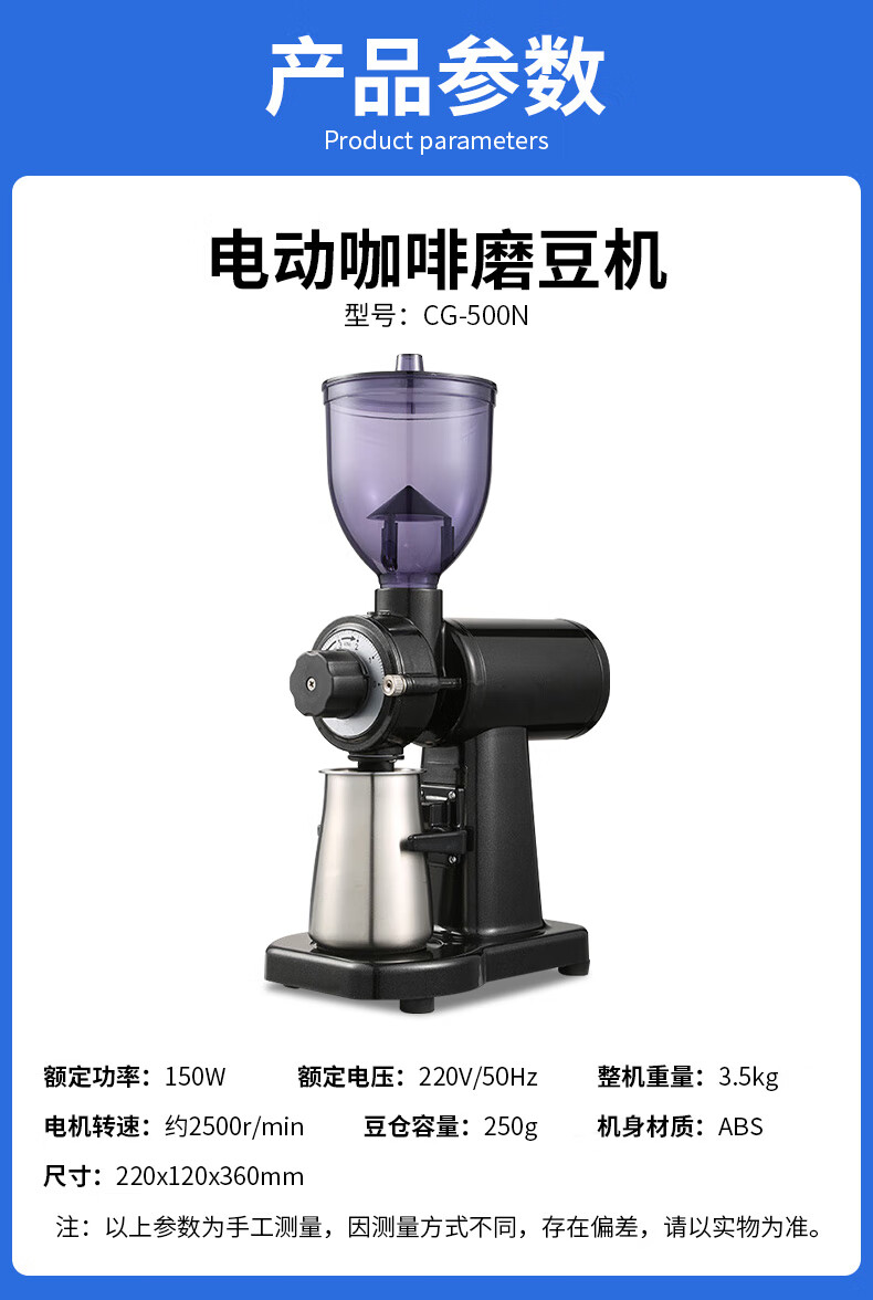 Stevison(史蒂芬) CG-500N 电动磨豆机电压:220V 功率:0.25KW不锈钢和喷涂表面